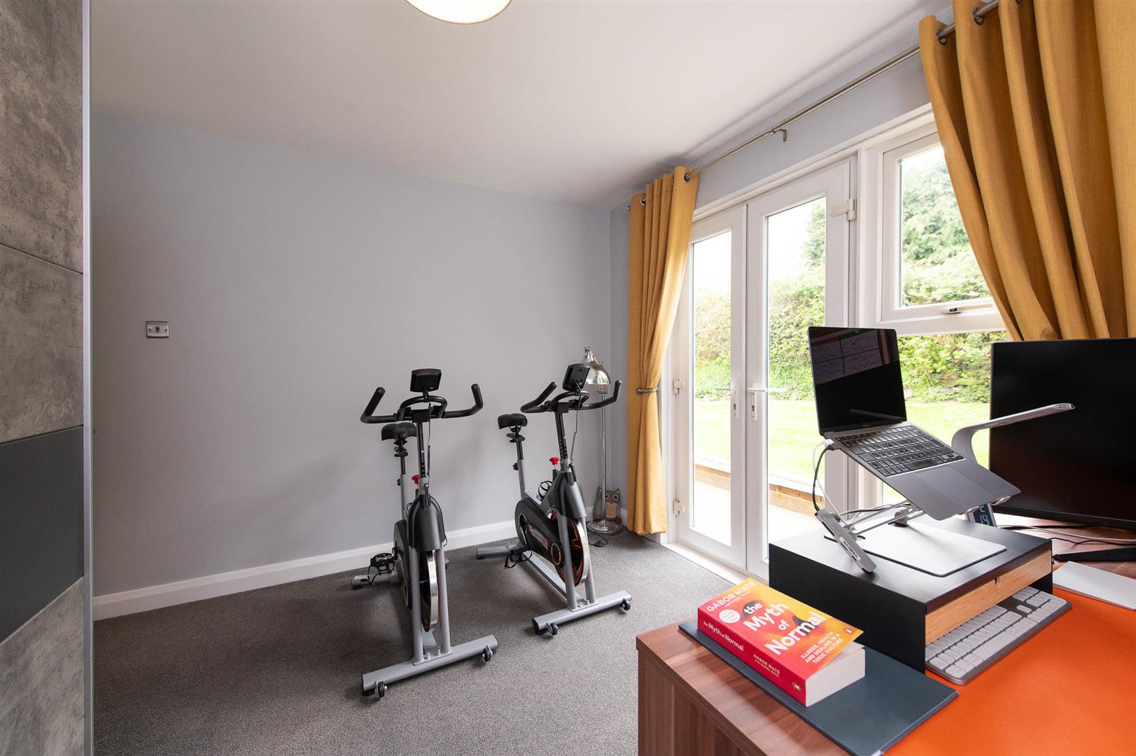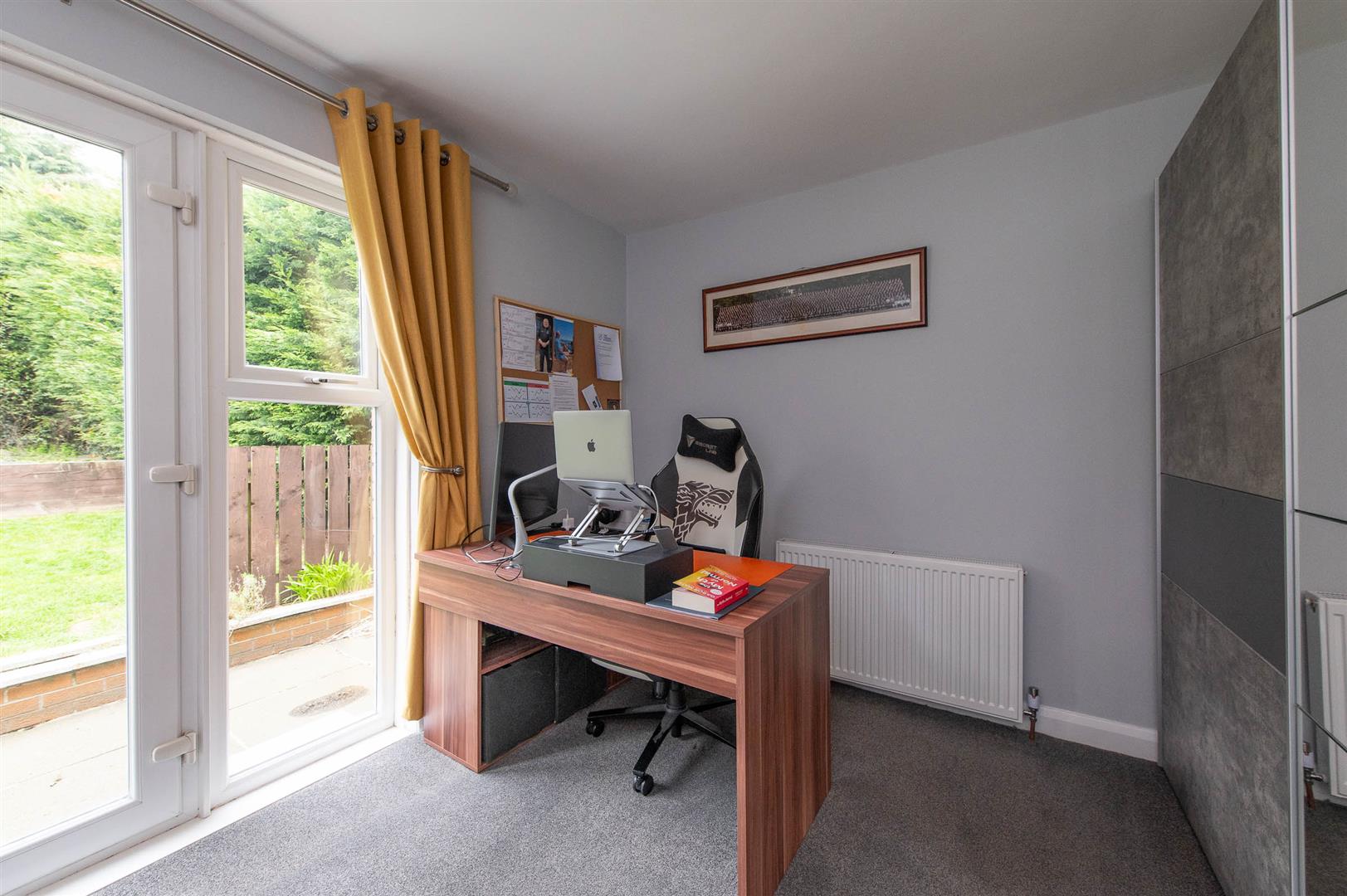 Double tarmac driveway leading to garage which was previously converted to a home office and storeroom. Well maintained front lawn with side gate leading to rear which again has a well maintained lawn and patio area, fully enclosed and private.