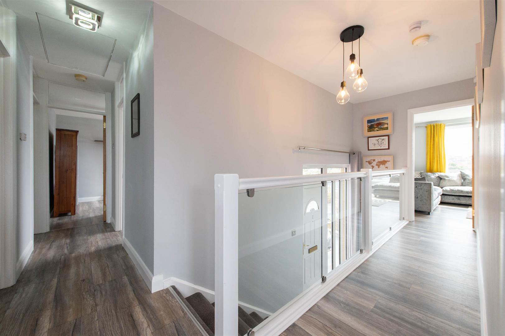 Entrance hallway with laminate flooring with stairs leading to the first floor accommodation. Landing again with modern laminate flooring and stunning glass bannisters. Living room with laminate flooring, Stove fitted with oak mantle above. Fitted Kitchen comprising Oven, Grill, Hob, integrated dishwasher and Fridge Freezer with tiled floor and recessed lighting. Utility area and back door access of Kitchen. Open plan dining area with tiled floor and large window allowing lots of natural lighting in. Family Bathroom with W.C, Wash Hand Basin with vanity beneath and Bath with shower overhead. Three great sized bedrooms, one with laminate flooring and Bedroom one with double patio doors to access garden.