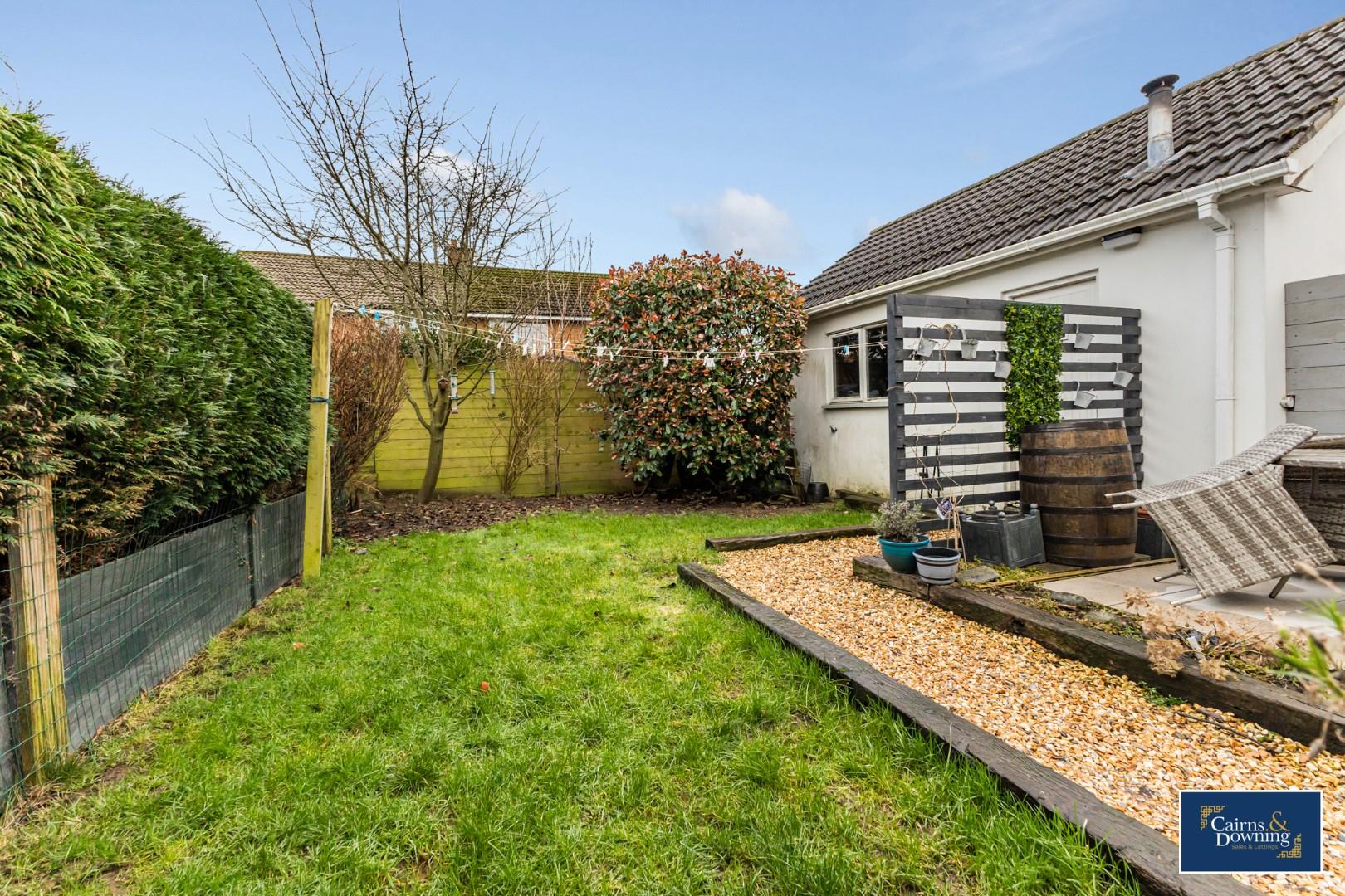Outside boasts a good sized south facing rear enclosed garden that also includes a covered patio area. There is an extra long driveway leading to a detached garage for extra storage and a vehicle.