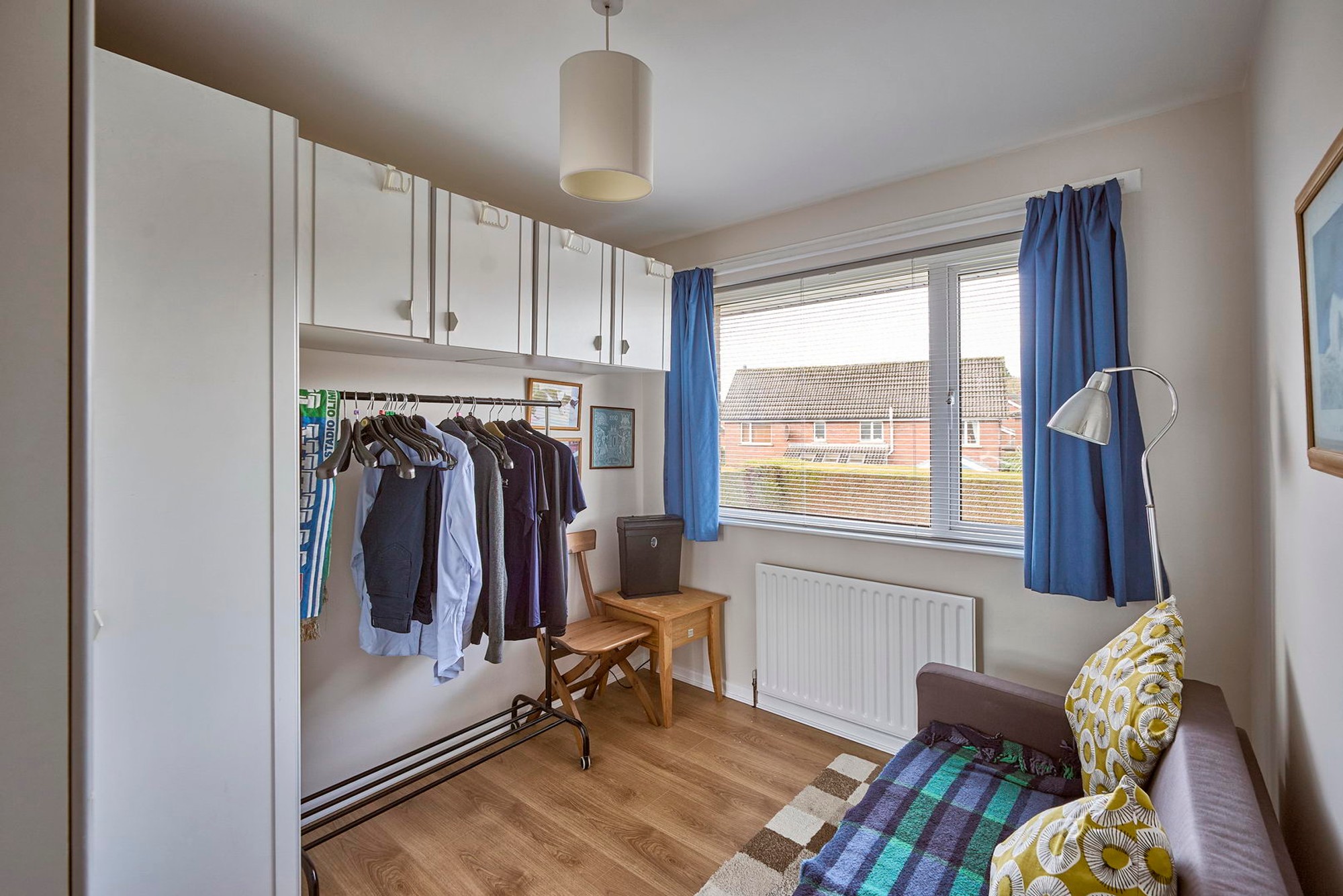 Well proportioned bedroom with storage cupboard.