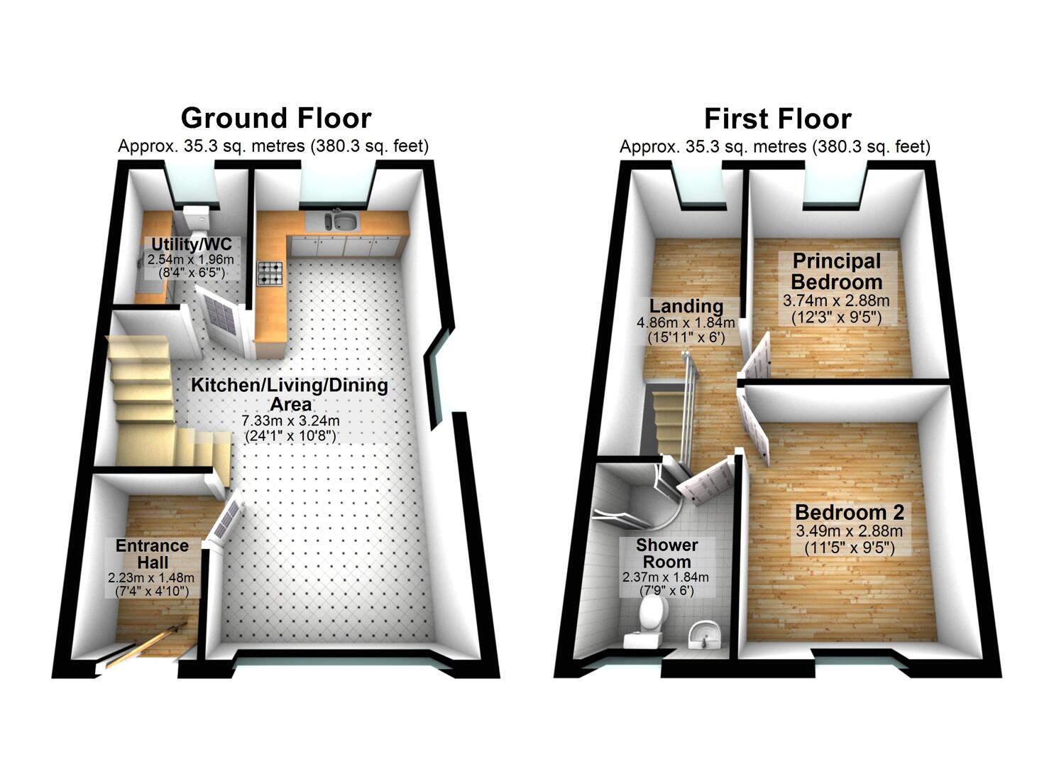 Upstairs, there are two well-proportioned bedrooms, each enjoying mature outlooks to front and rear respectively, and a contemporary shower room with modern white suite.