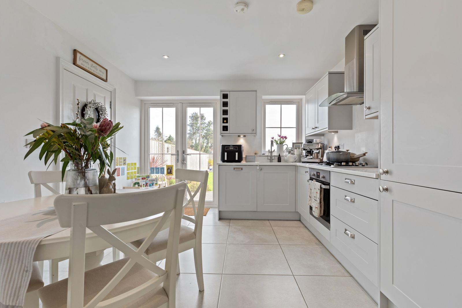 Range of modern high and low level cupboards and drawers with quarts work surfaces. Built in stainless steel 4 ring hob and oven under. Extractor canopy with integrated fan and light. Integrated Fridge/freezer and dishwasher. Single drainer stainless steel sink unit with mixer tap. Ceramic tiled floor.
