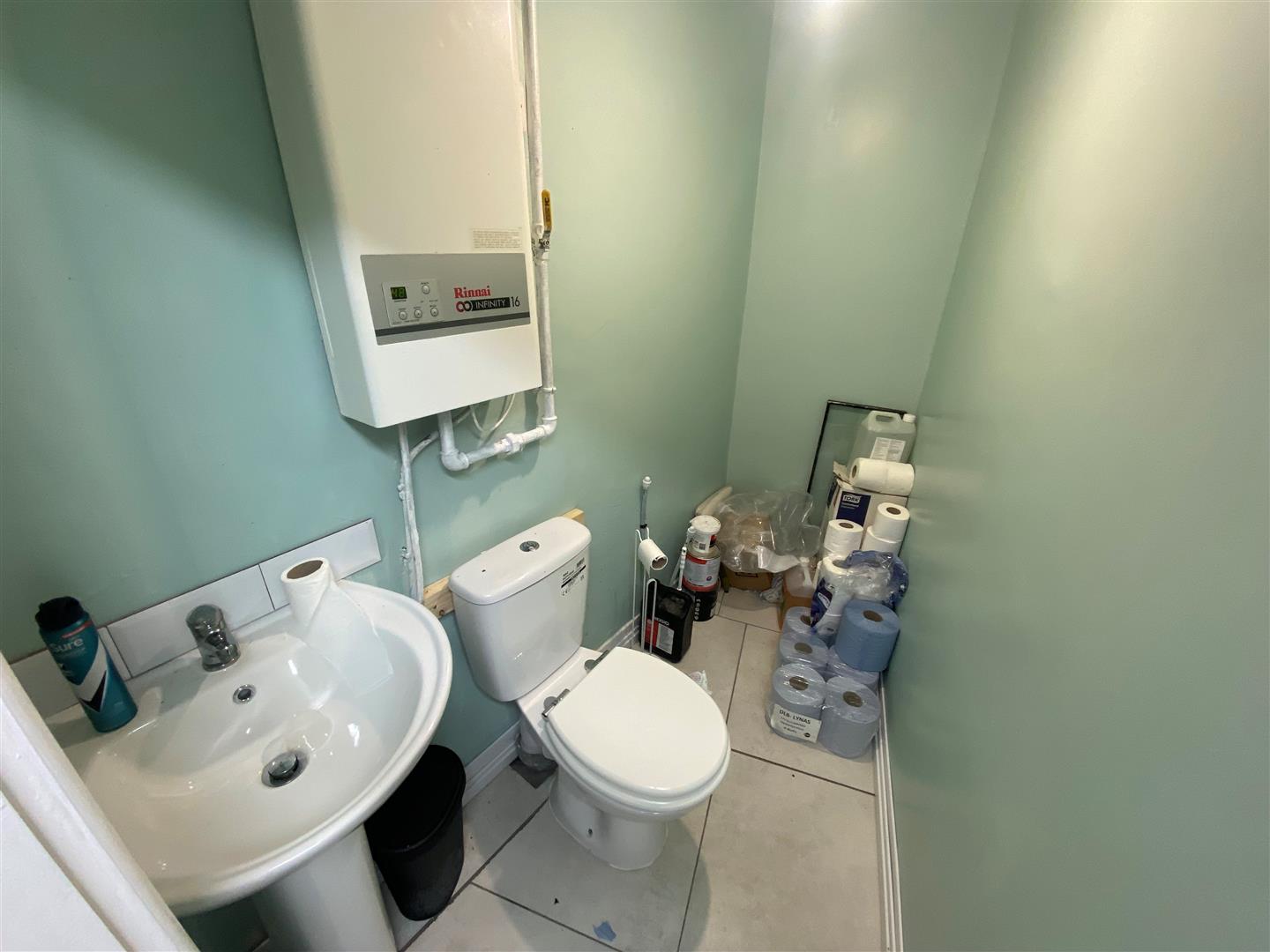 Ceramic tiled floor. Part tiled walls.