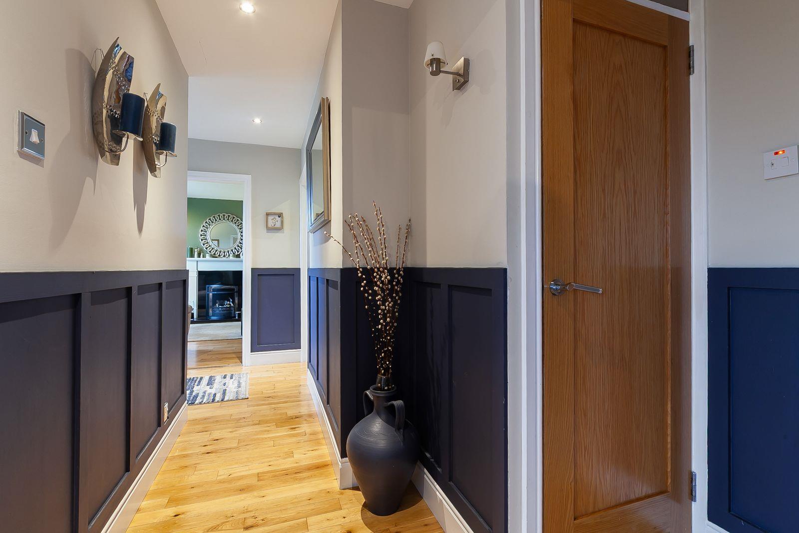 uPVC double glazed entrance door and side panel. Solid oak wood floor. Half panelled walls. 4 Downlights. Built-in cloaks cupboard.