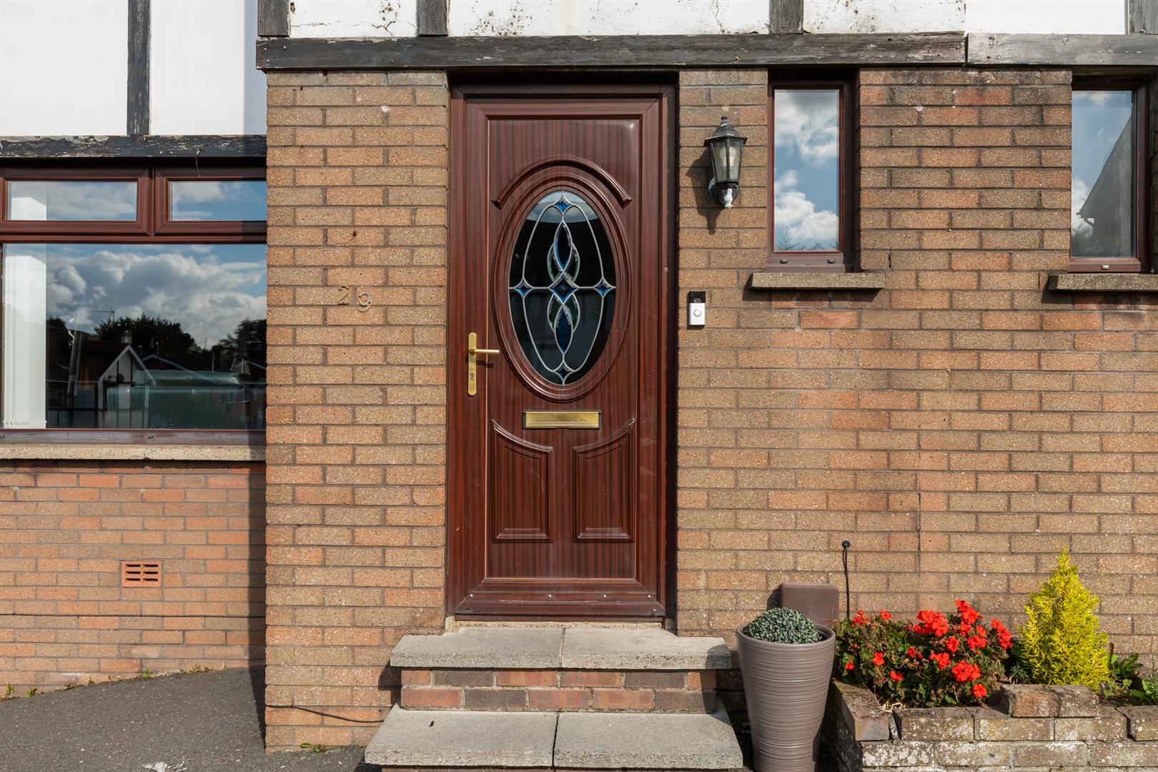 Mahogany effect uPVC double glazed front door.