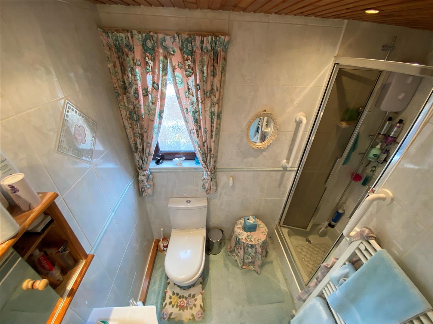 Comprising walk in shower with "Redring" electric shower. Vanitory unit with inset wash hand basin. W.C. Tiled walls. Pine ceiling with 3 downlights.