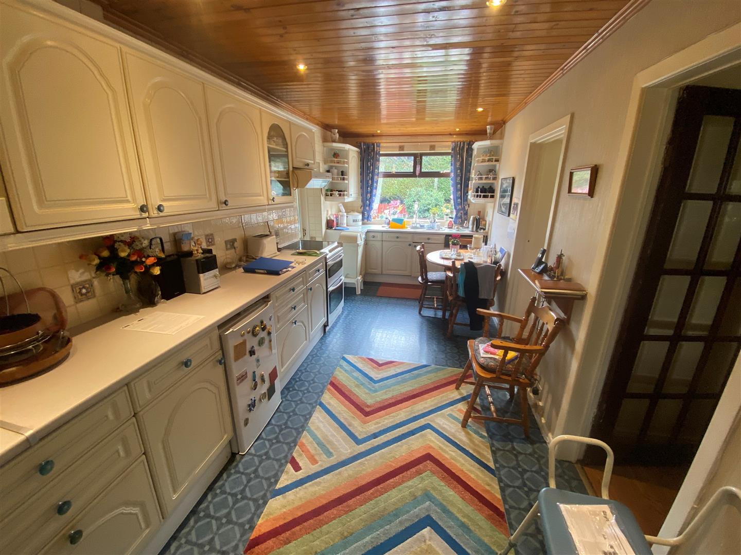 Range of high and low level cupbaord and drawrs with roll edge work surfaces incorporating unit display cabinets. Built in "Candy" extractpr fan and light. 1 1/2 tub single drainer stainless steel snk unit with mixer tap. Plumbed for dishwasher. Part tiled walls. Pine ceiling with 8 downlights.