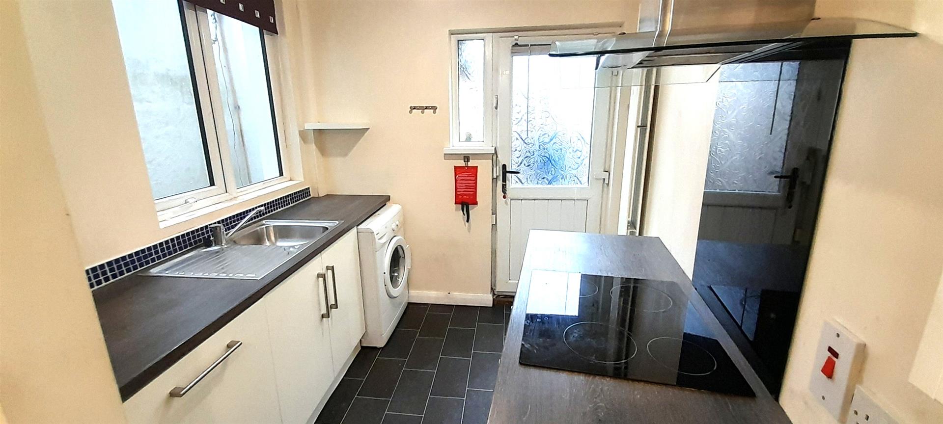 High and low level units with roll edge work surfaces. Extractor fan. Integrated 4 ring hob and oven. Stainless steel sink unit with mixer tap. Double panel radiator. Plumbed for washing machine. White uPVC double glazed windows and rear door.