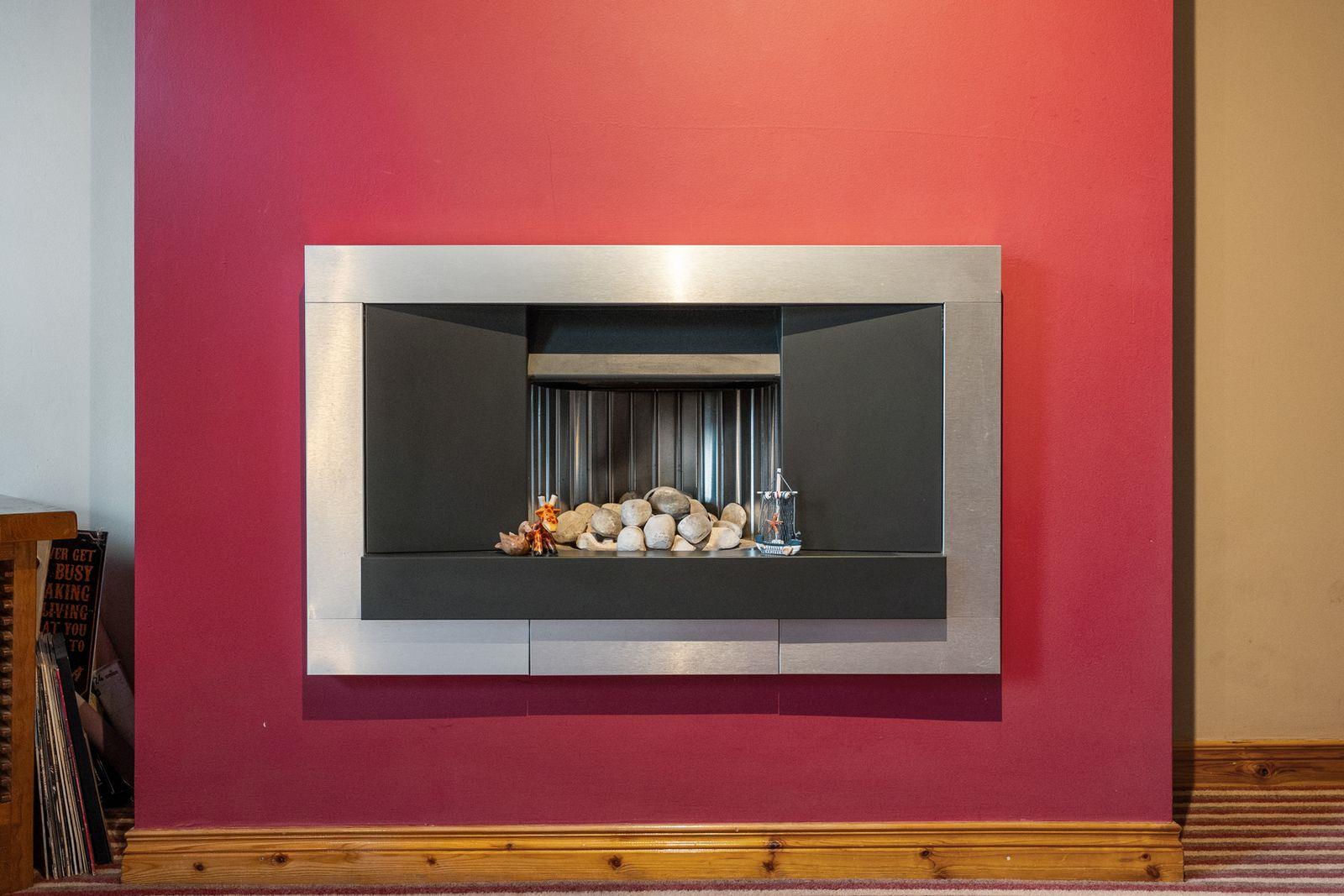Single panel radiator. Double glazed Velux style window. Built-in shelved cupboard.