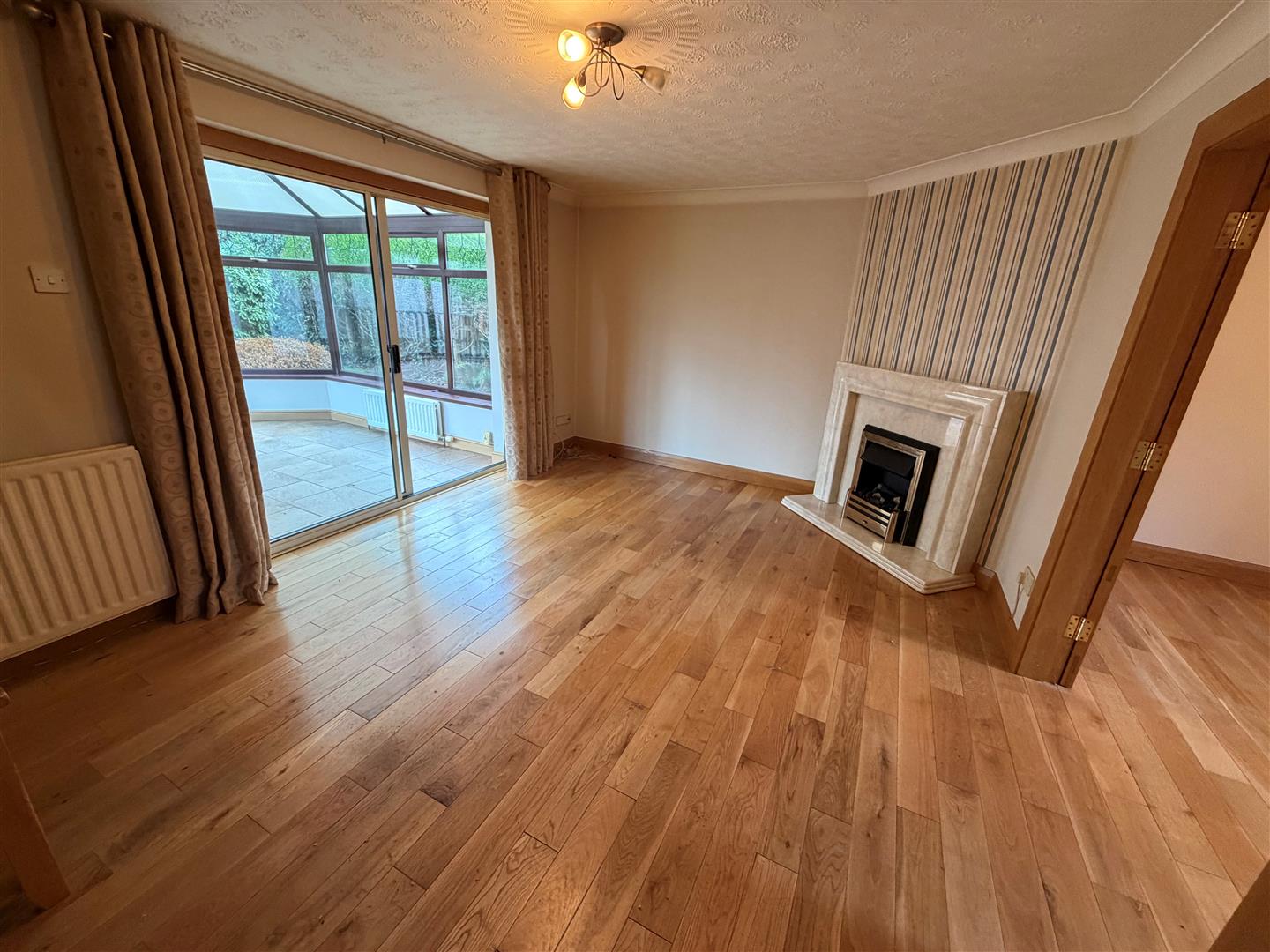 Cornice. Solid oak wood floor. uPVC double glazed patio door into ...
