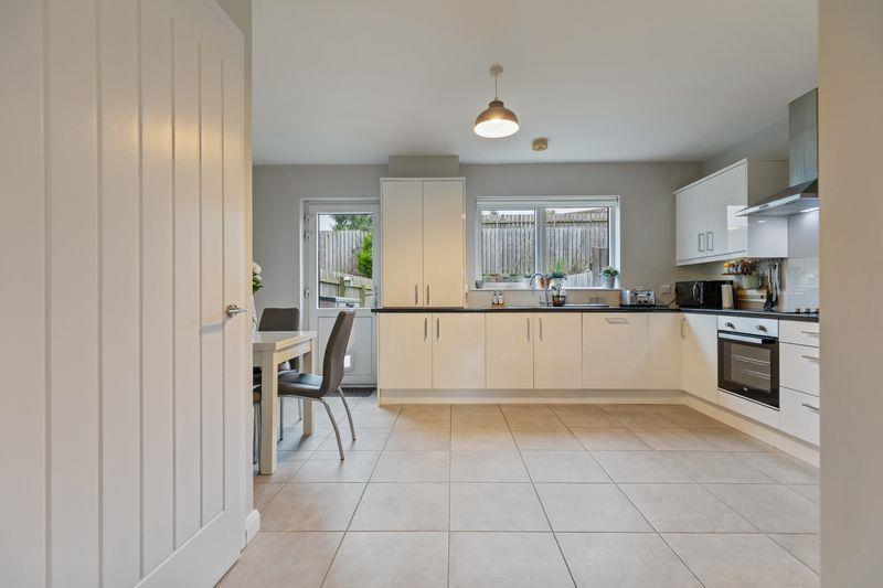 White uPVC double glazed windows. Feature wall mounted electric fire. Double panel radiator. Wooden Laminate floor. Understairs cloakroom with wooden laminate flooring. Double doors from lounge leading to Kitchen/dining area.