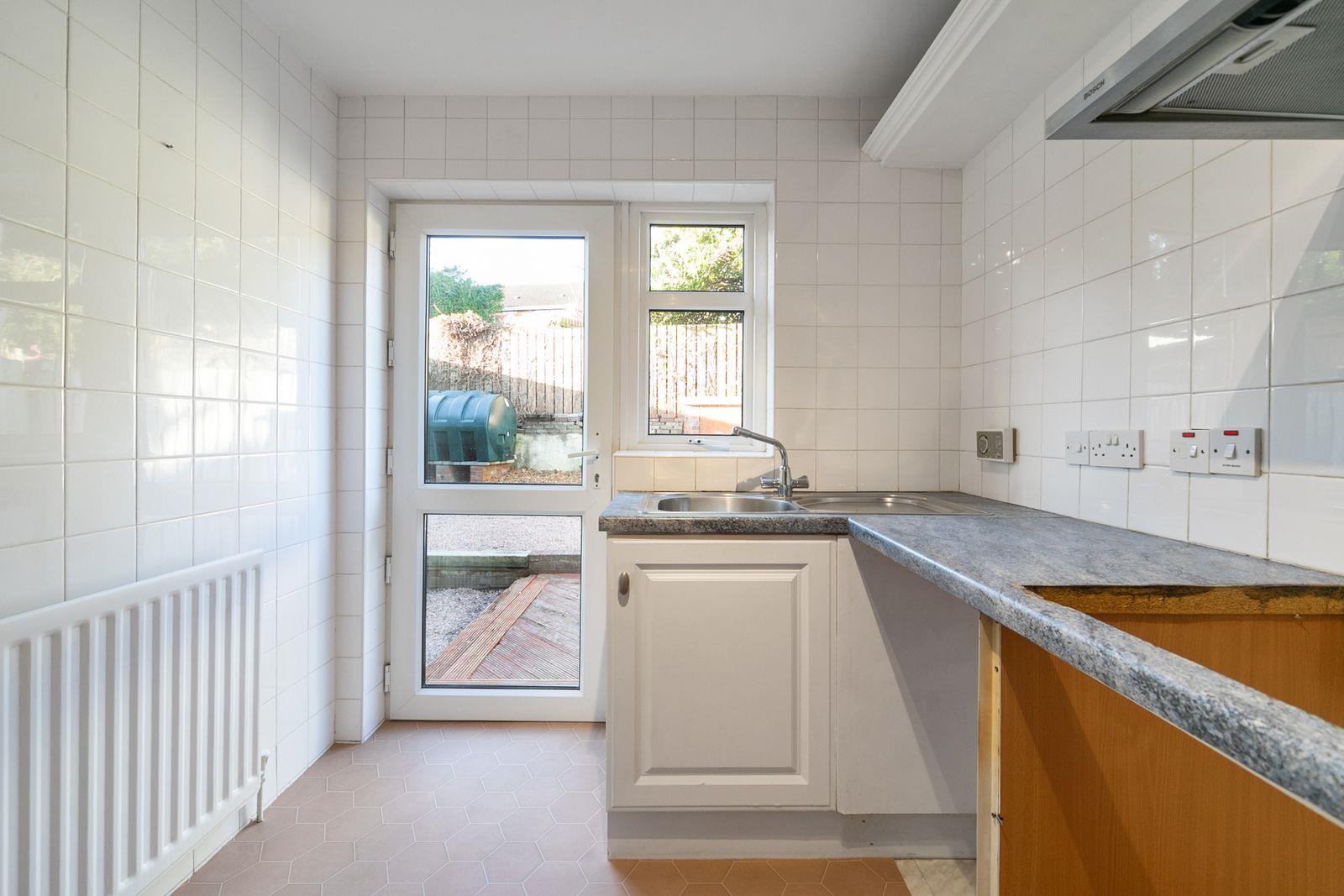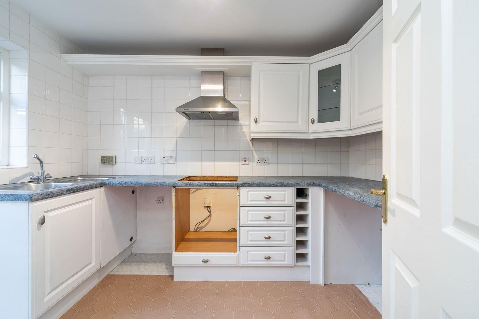 Range of high and low level cupboards and drawers with roll edge work surfaces. Extractor hood with integrated fan and light. Single drainer stainless steel sink unit with mixer taps. Plumbed for washing machine. Fully tiled walls.