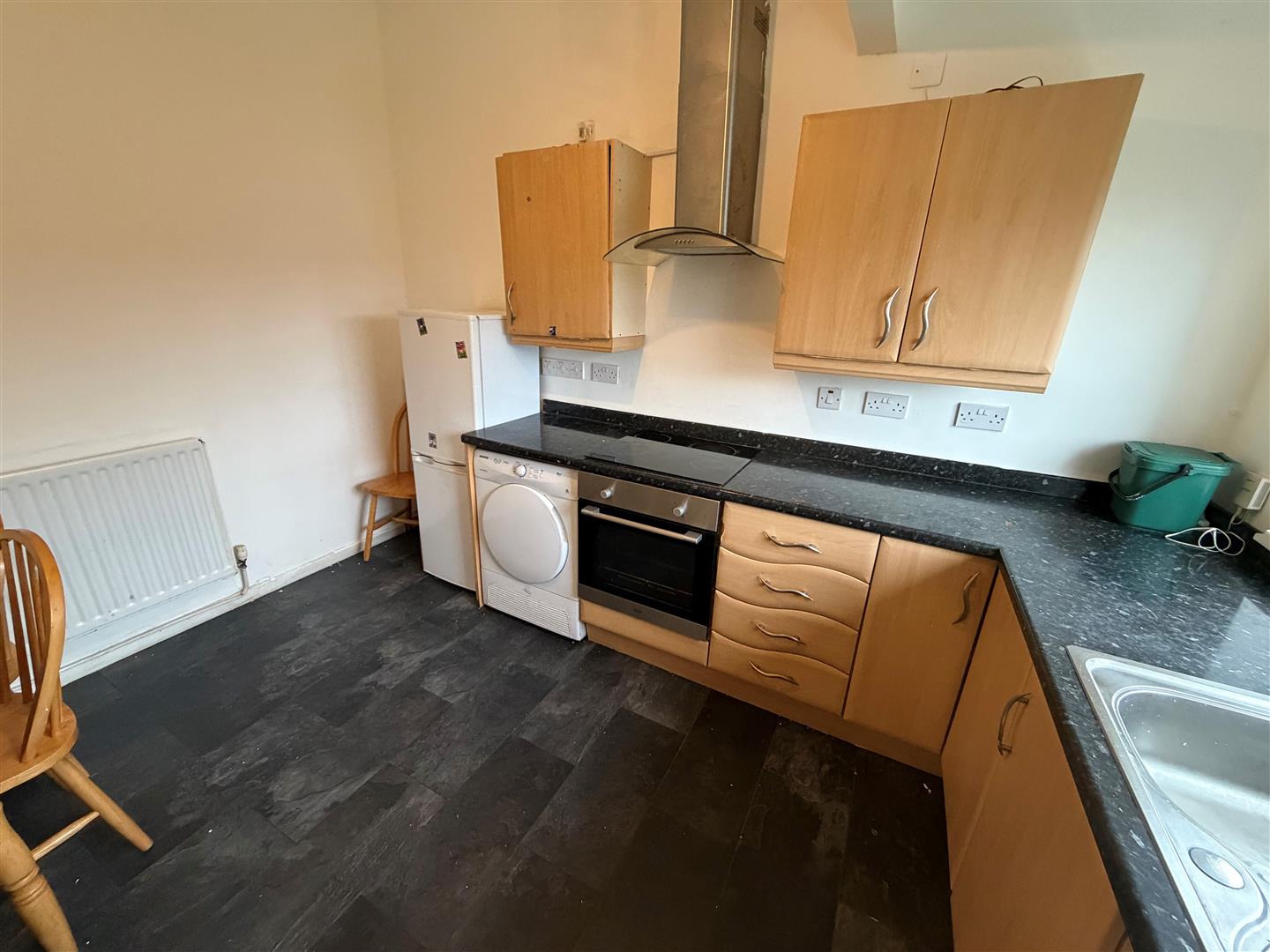 Feature single glazed internal door from hall. High and low level units. Roll edge work surfaces. Single drainer sink unit with mixer taps. Extractor fan. Built in hob and oven. Plumbed for washing machine and dishwasher. Tile effect laminated wooden flooring. Single panelled radiator. White uPVC double glazed windows.