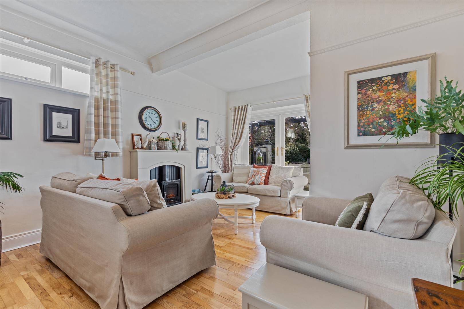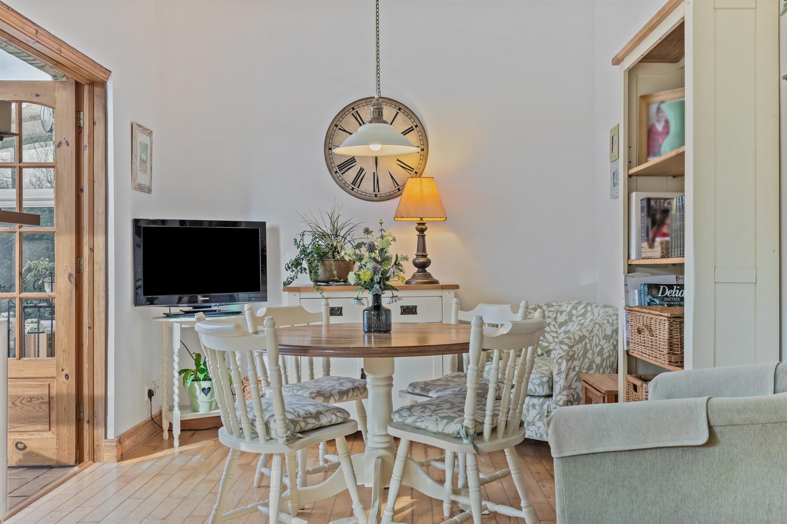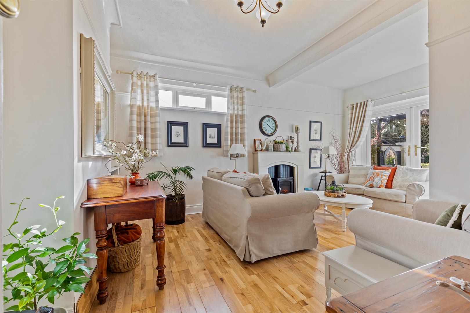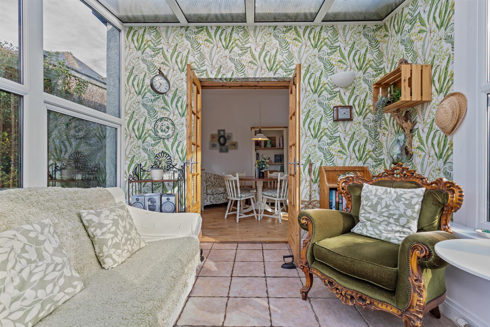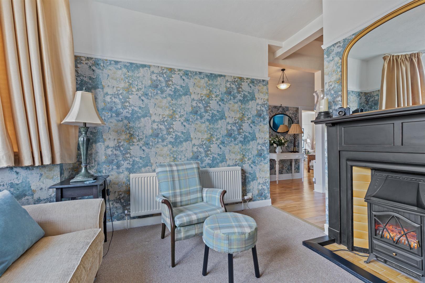 White uPVC double glazed windows. White uPVC double glazed double doors to rear patio. Double panel radiators. Mock fireplace (not included in the sale). Picture rail. Part corniced ceiling. Dimmer switches. Wooden flooring.