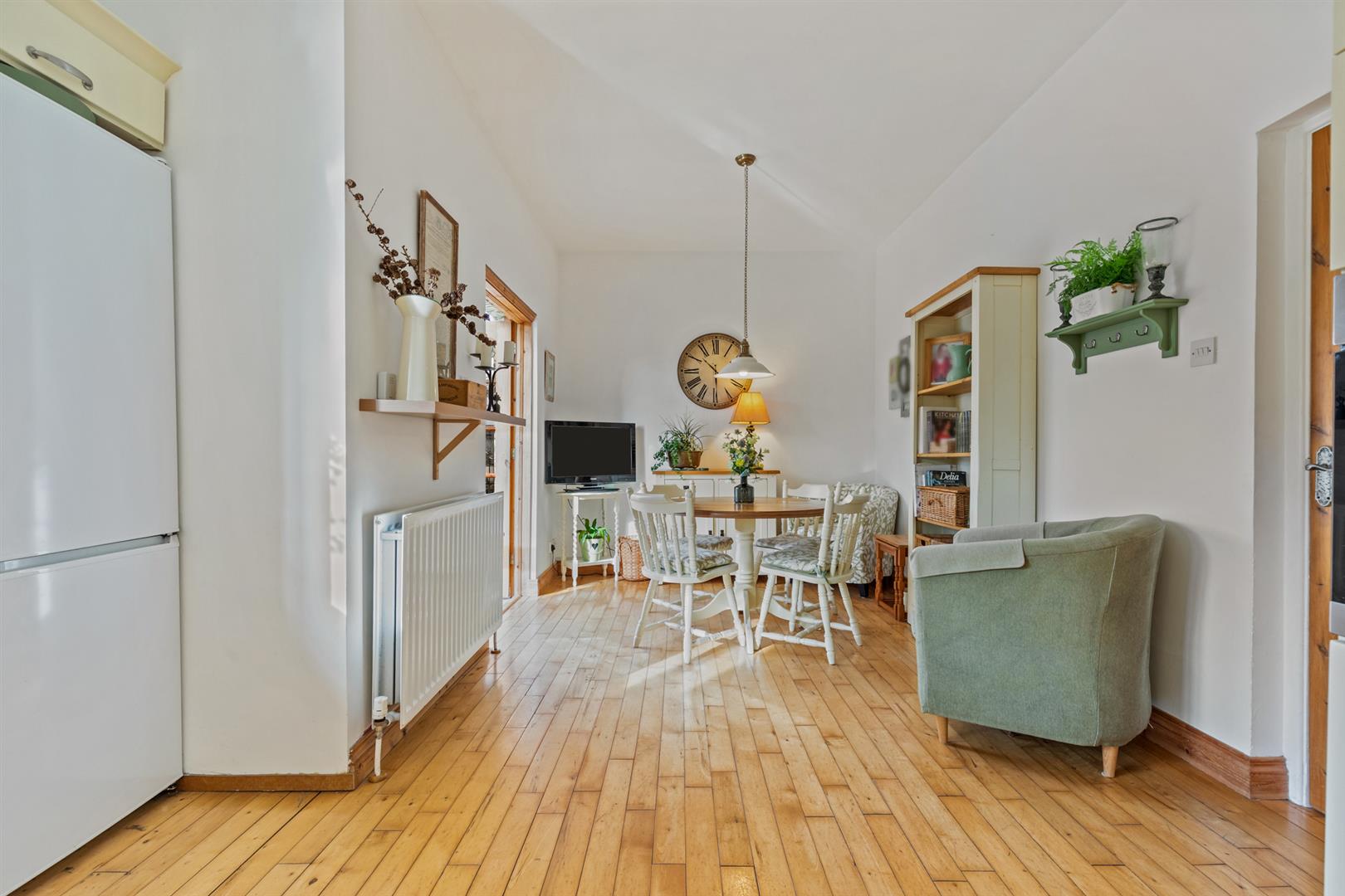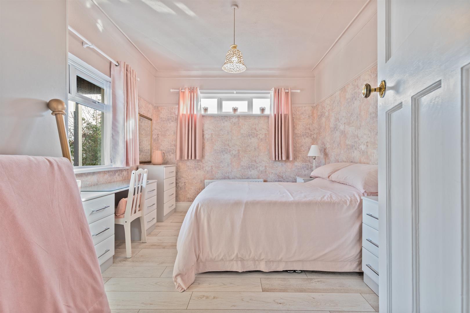 White uPVC double glazed windows. Wooden laminate flooring. Feature wall mounted radiator. Picture rail.