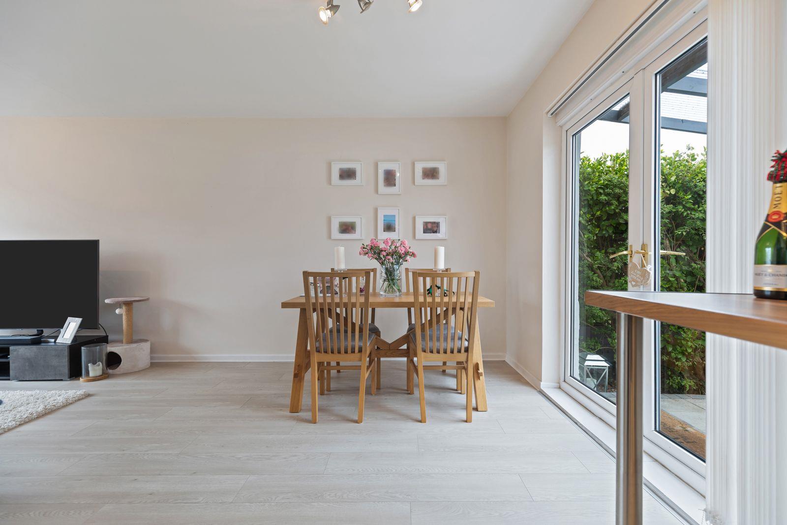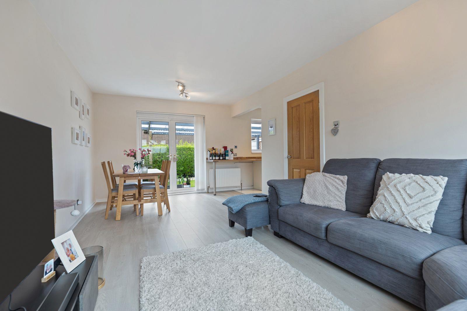 Laminated wood floor. uPVC double glazed French doors to rear.