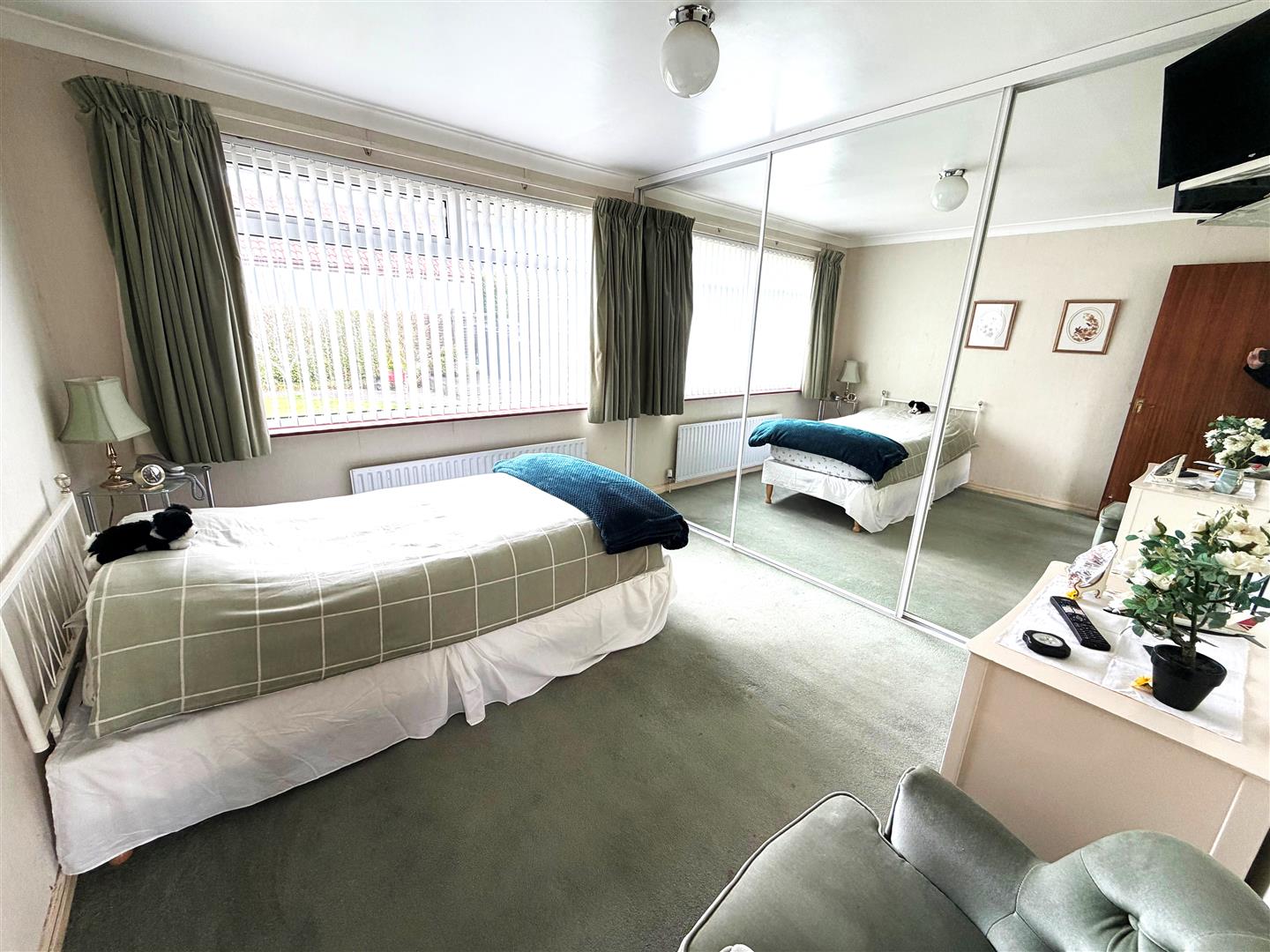 uPVC double glazed windows. Single panel radiator. Corniced ceiling. Wardrobe with sliding mirrored doors. Wardrobe access to wash room: