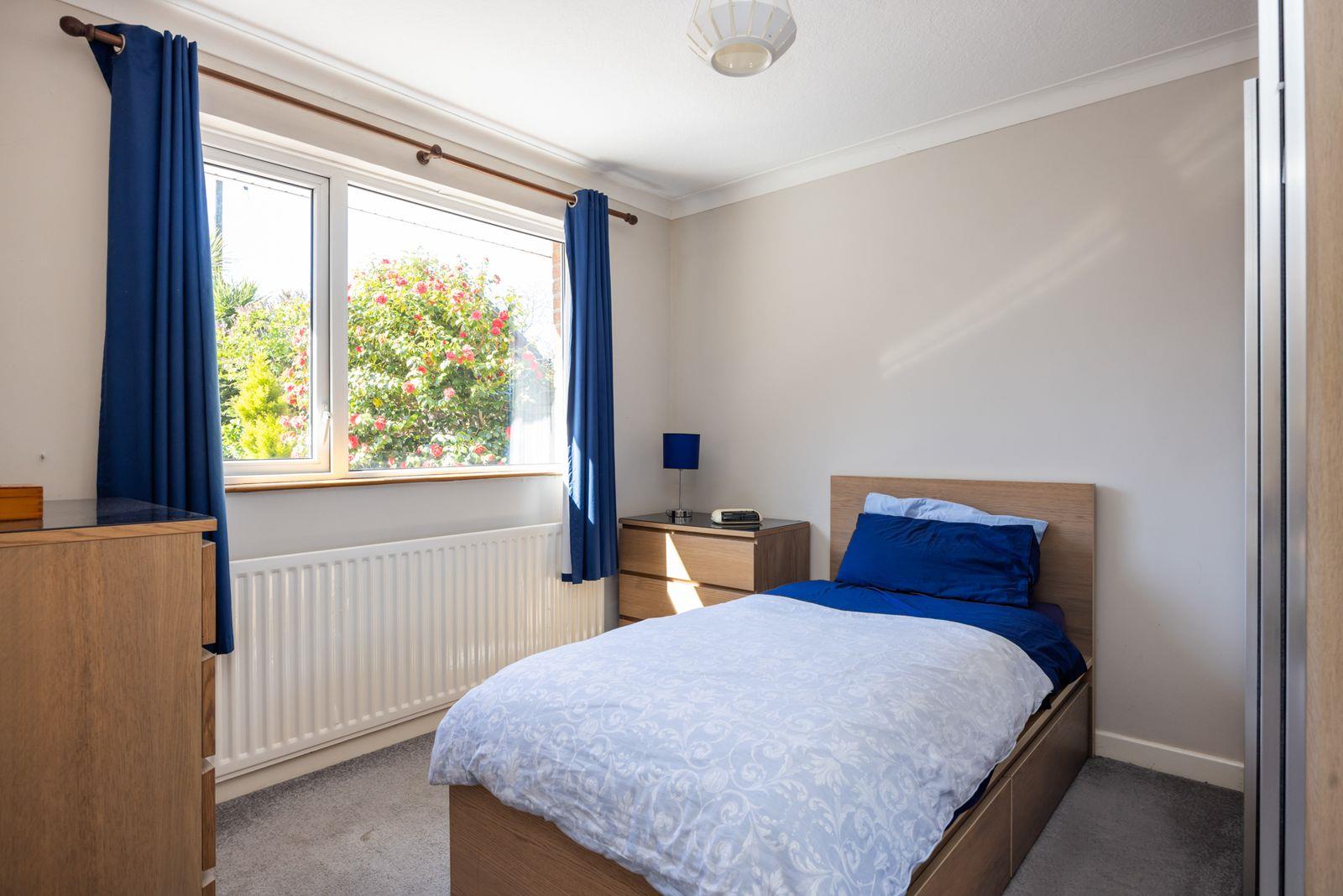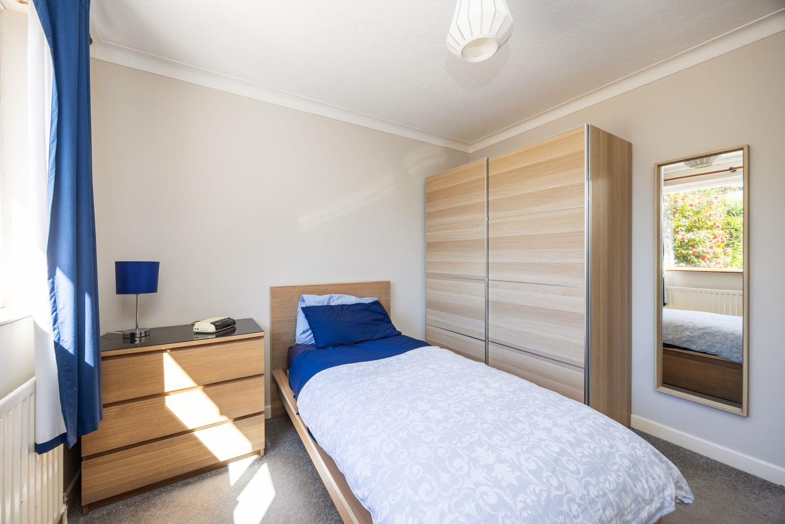 White uPVC double glazed windows. Corniced ceiling. Built-in shelved cupboard.