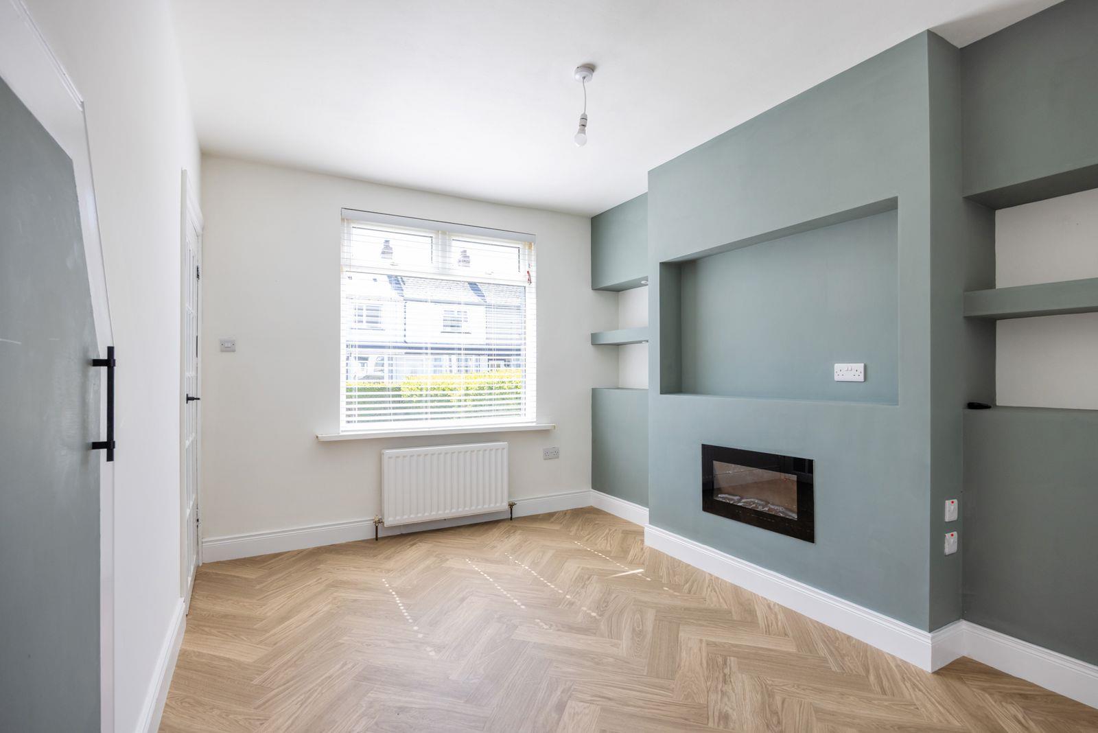 Inside, the bright lounge features a sleek media wall, creating a perfect focal point. The kitchen has been fully refurbished with modern units, complemented by a practical utility space. Upstairs, you´ll find two well-proportioned bedrooms and a newly fitted white shower suite, all finished with modern flair.