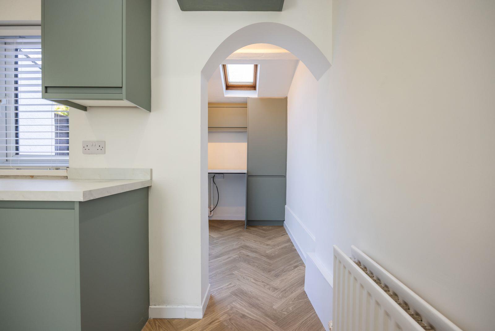 Range of high and low level units. Plumbed for washing machine. Double glazed Velux window.