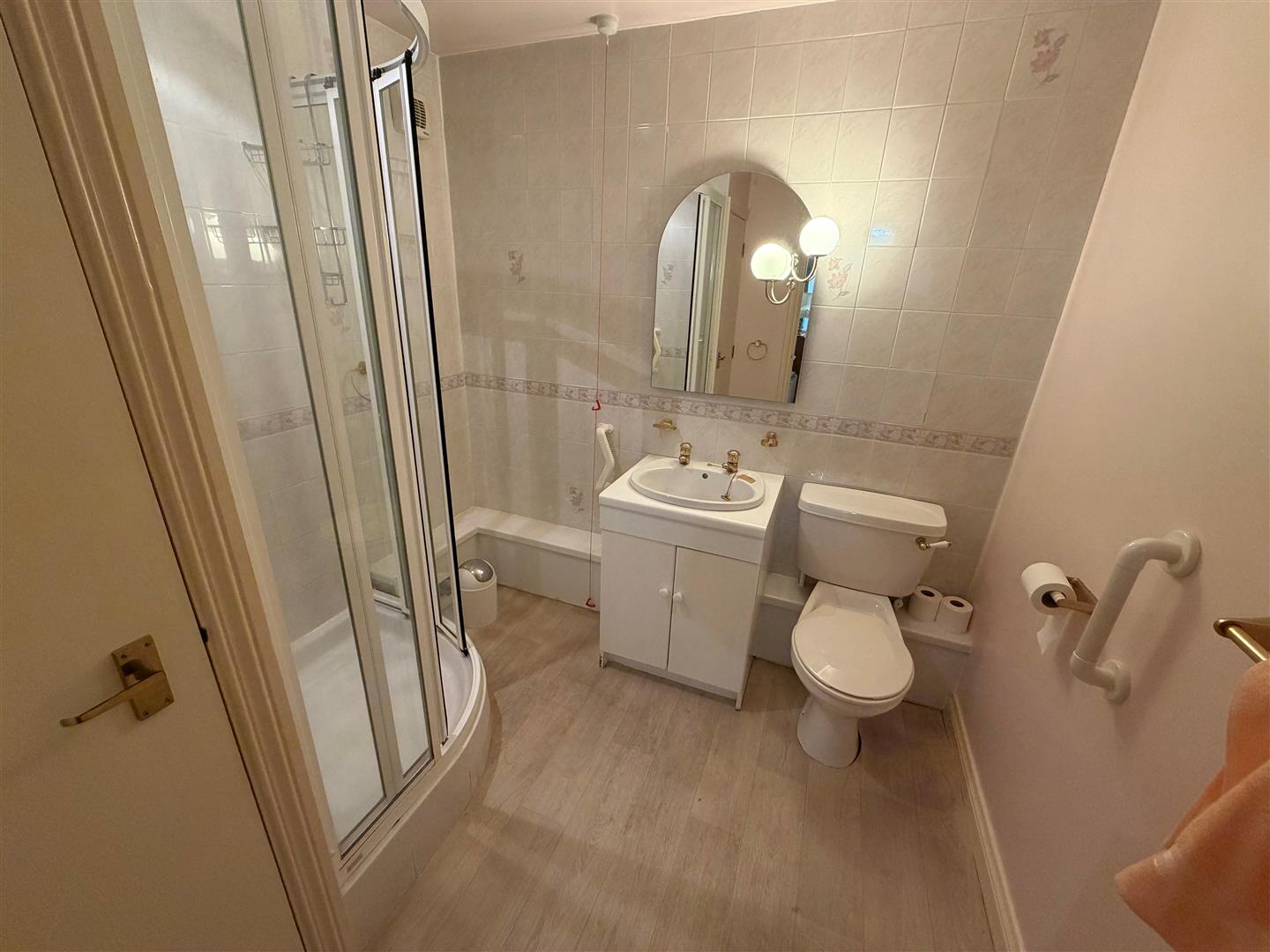 Comprising: Corner shower with Aqualisa thermostatic shower over. Vanity unit with inset wash hand basin. W.C. Tiled walls. 3 Low voltage downlights. Built-in extractor fan. Built-in hotpress with insulated copper cylinder and immersion heater.