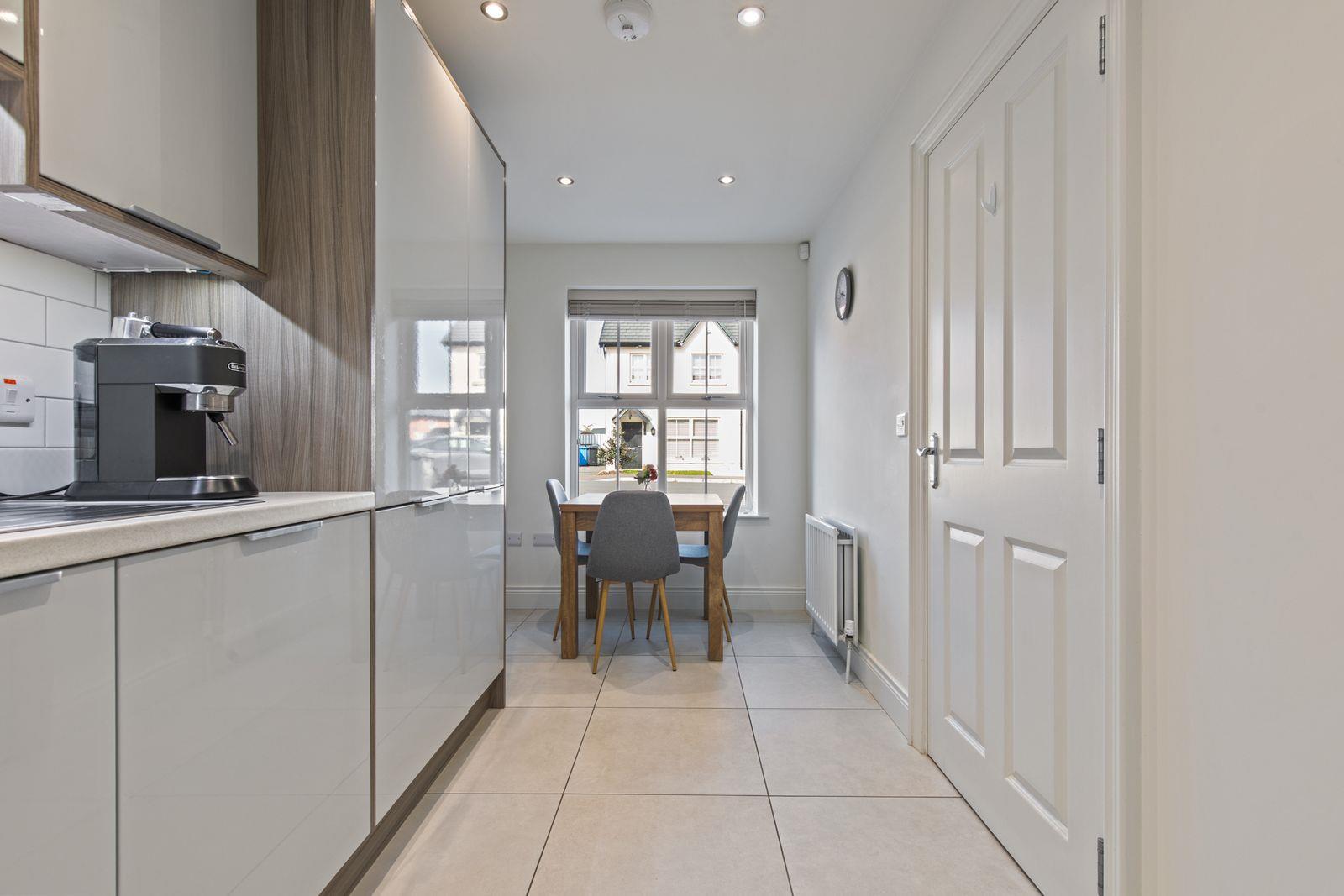 The property provides well-presented, contemporary accommodation throughout. On the ground floor, a bright and spacious lounge enjoys views over the rear garden, with French doors creating a seamless connection to the outdoors-perfect for relaxing or entertaining. The modern kitchen is open plan to a dining area, offering a practical and sociable layout suited to everyday living.