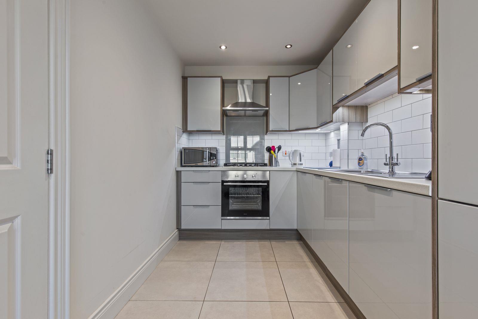 Ceramic tiled floor. Built-in storage with plumbing for washing machine. Concealed gas boiler.