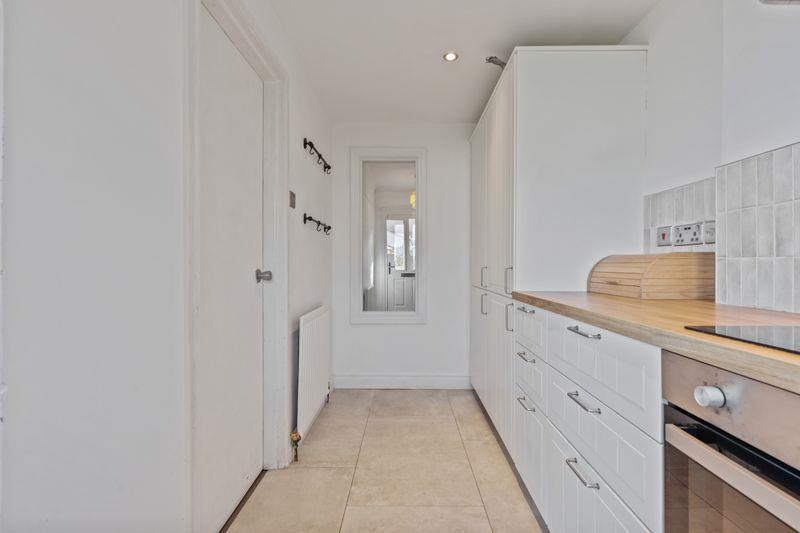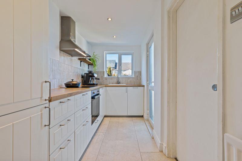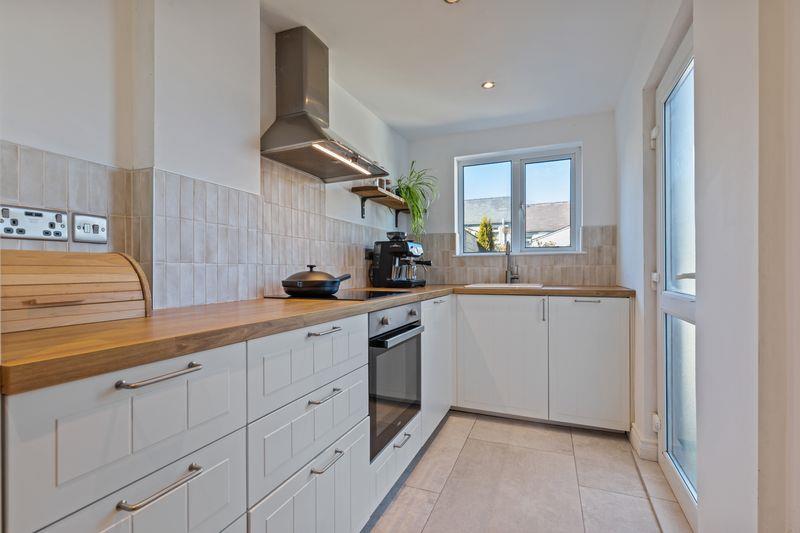 Modern high and low level units with roll edge work surfaces. Sink unit with mixer tap. Extractor fan. Integrated 4 ring hob and oven. 2 Integrated dishwashers. Integrated fridge/freezer. Tiled floor. Single panel radiator. Ceiling downlighters. Part tiled walls. White uPVC double glazed windows and rear door.