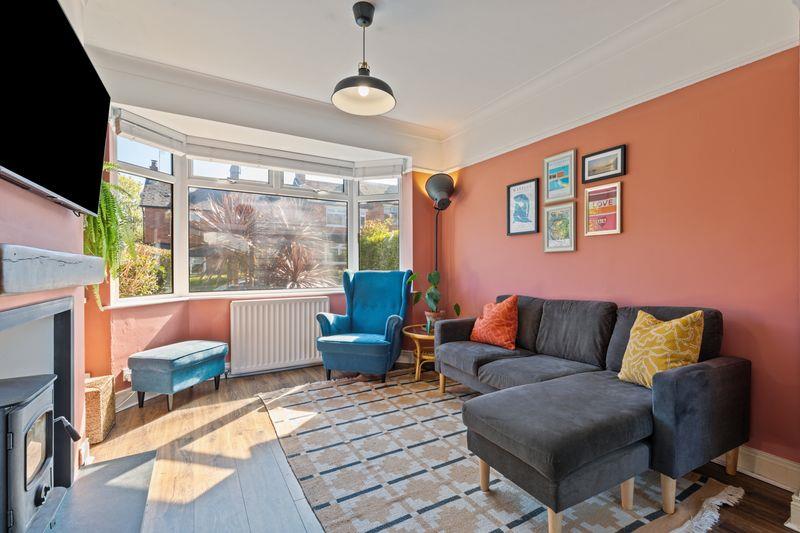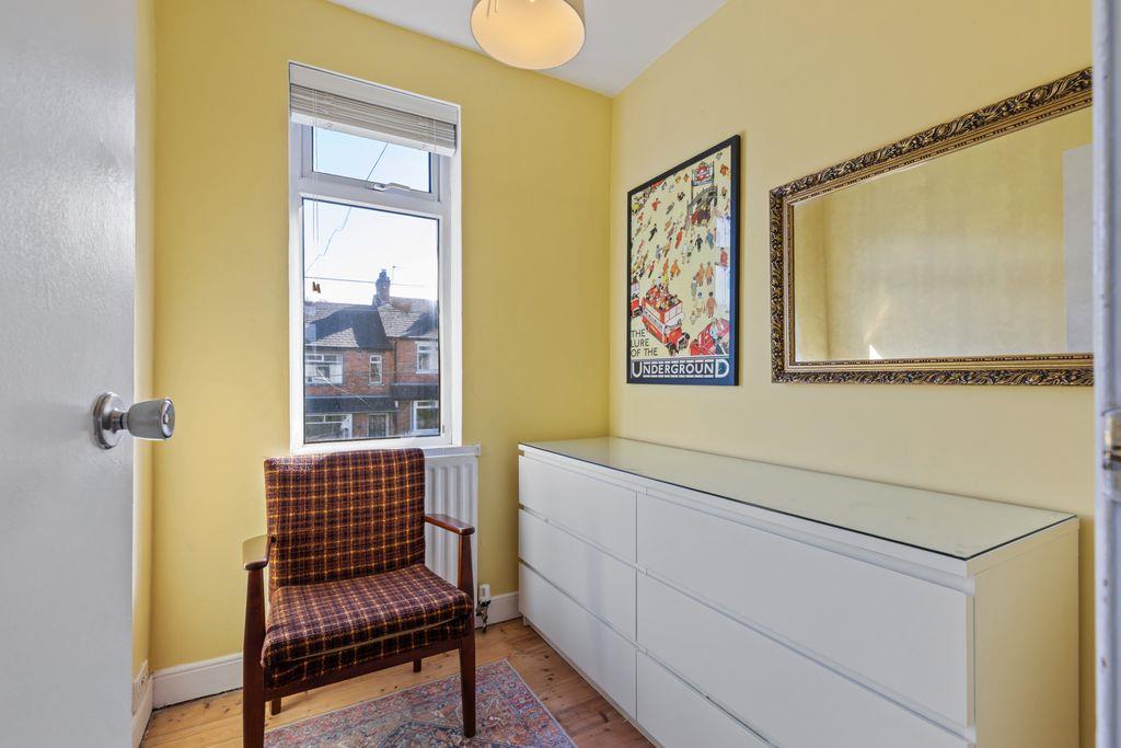 Wooden laminate flooring. Single panel radiator. Feature single glazed internal window looking into kitchen. Corniced ceiling. Picture rail.