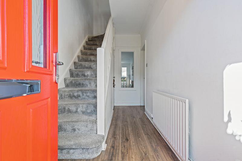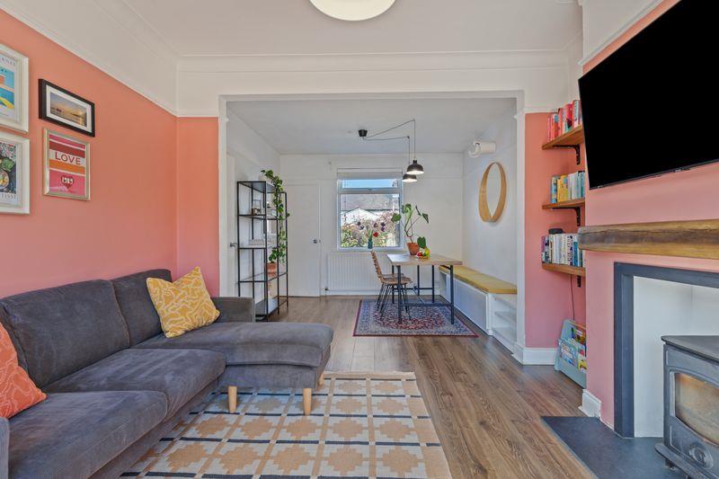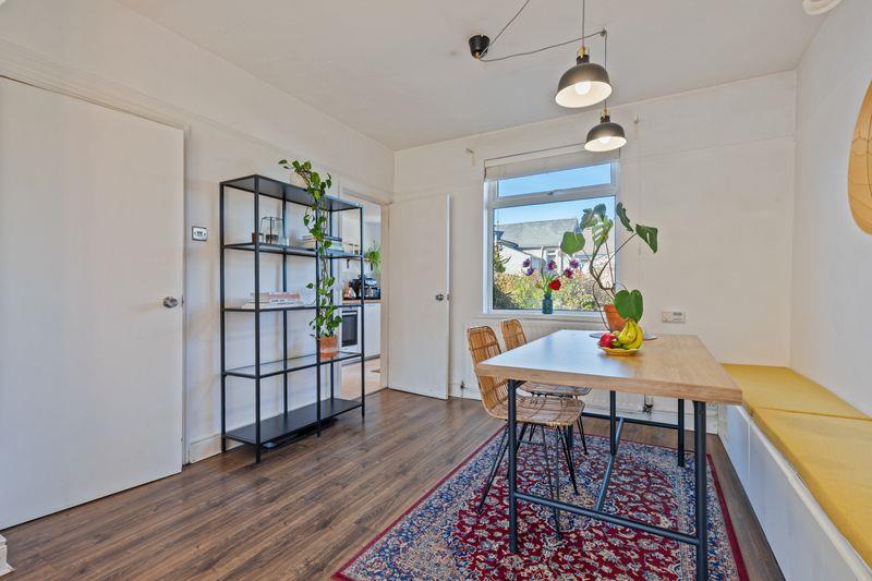 White uPVC double glazed windows. Single panel radiator. Wooden laminate flooring. Picture rail. Fitted seating with storage below. Open plan to ...