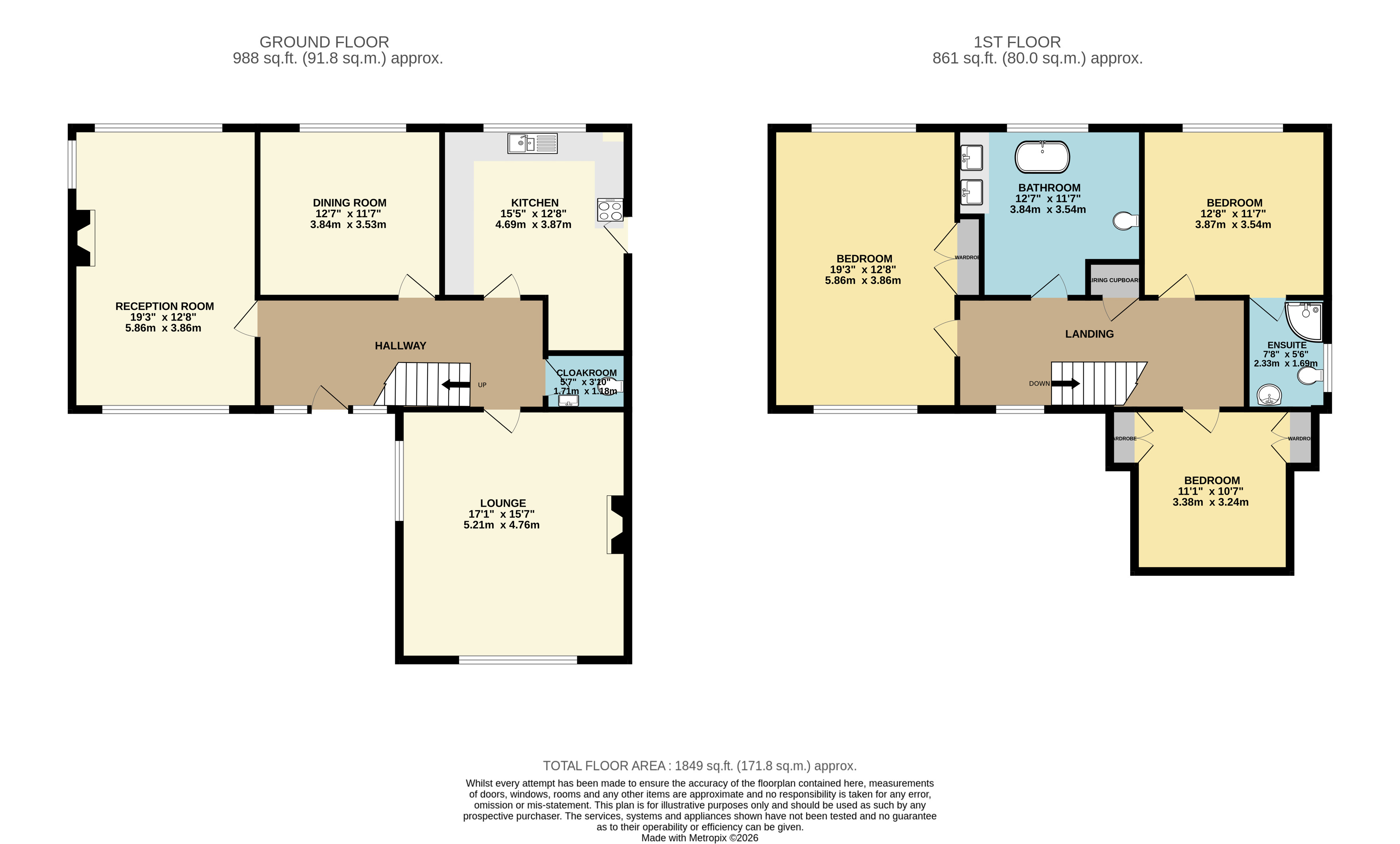 Upstairs, the sense of space continues with three well-proportioned double bedrooms. The principal bedroom benefits from a large built-in wardrobe, while the second bedroom is complemented by an ensuite shower room. The third bedroom features two built-in wardrobes, providing excellent storage. A family bathroom serves the remaining accommodation.