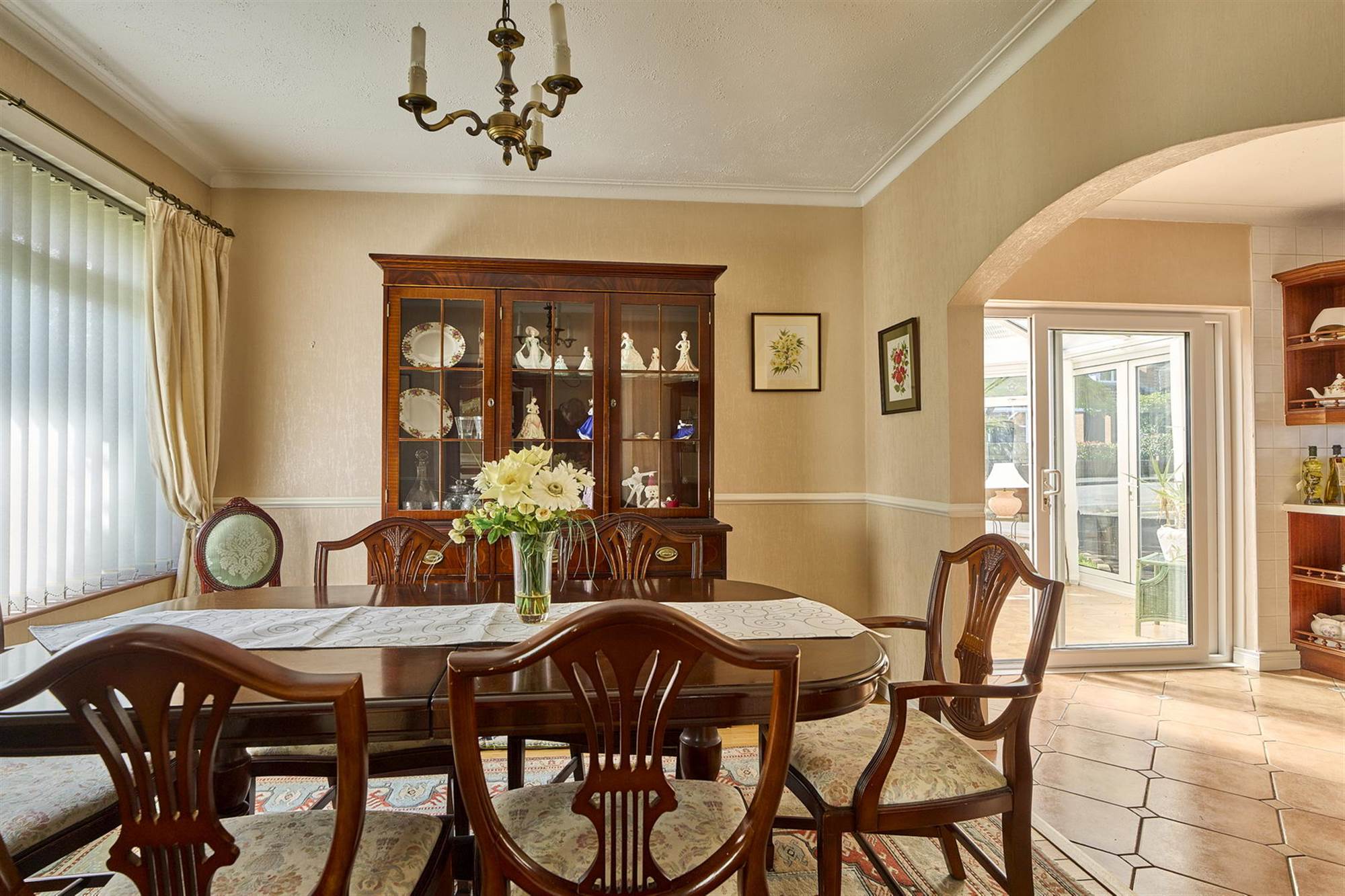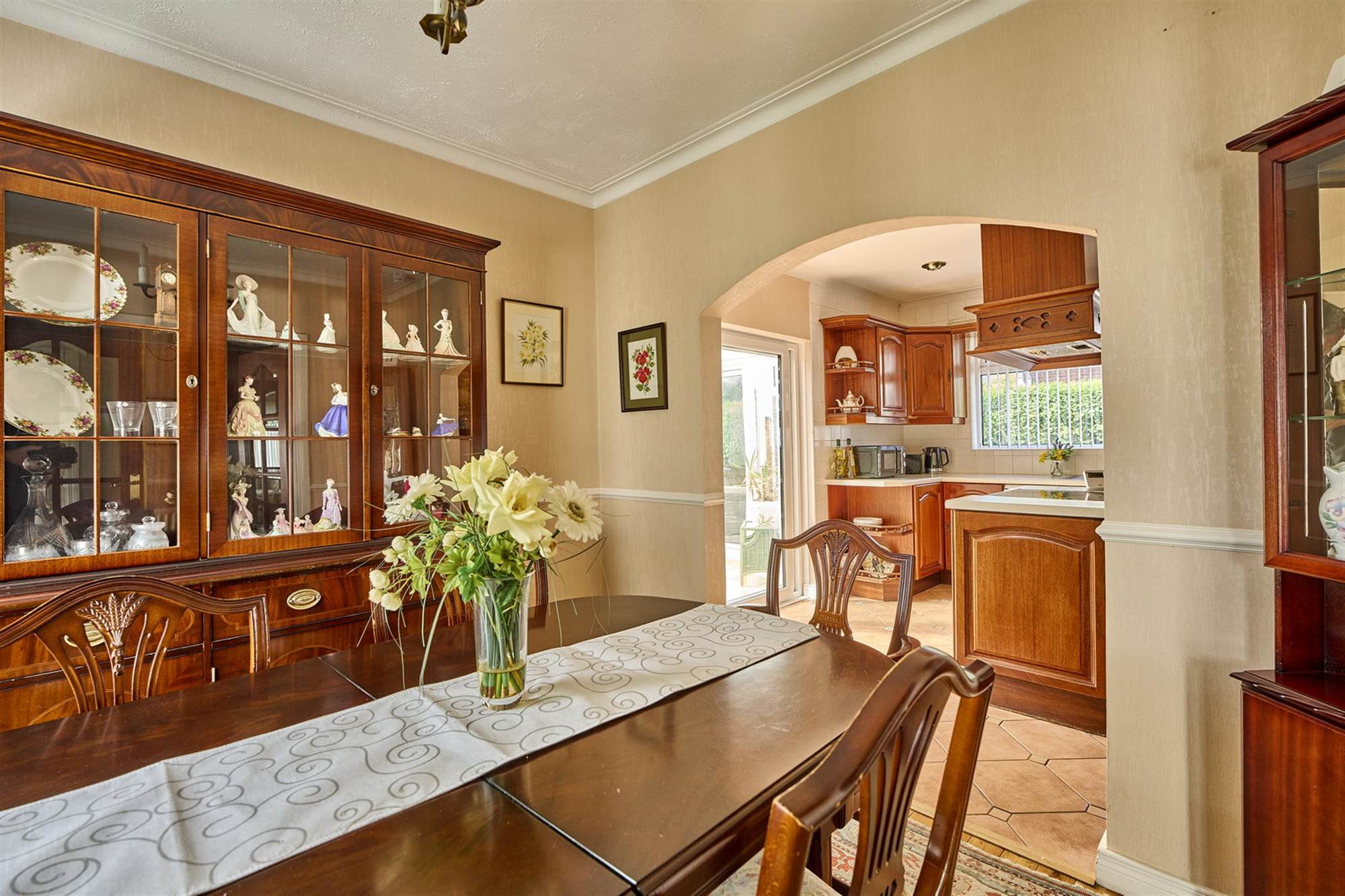 Solid wood floors. Cornice ceiling, archway to: