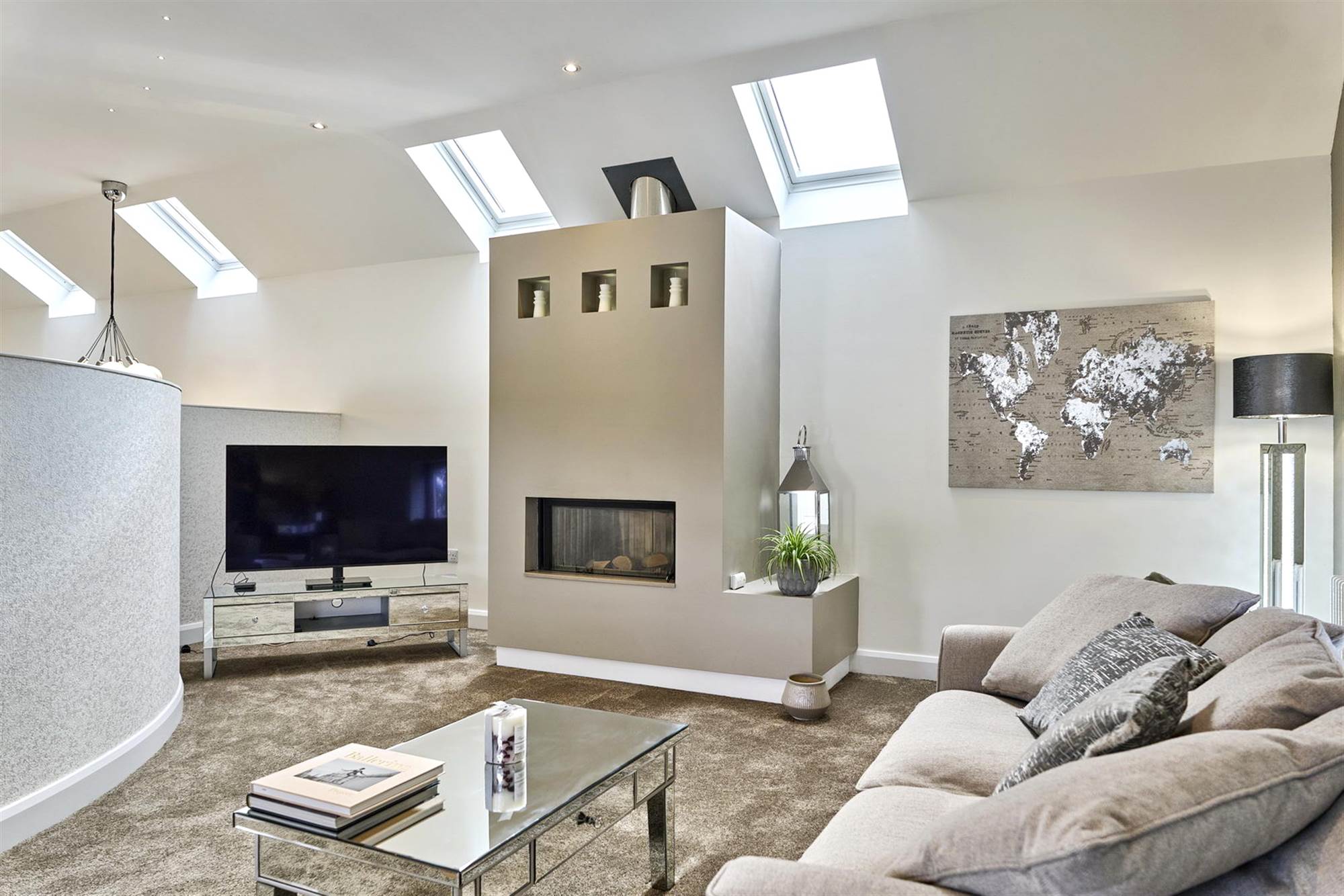 (at widest points). Contemporary multi fuel stove, recessed lighting, Velux windows, wired for wall lights.