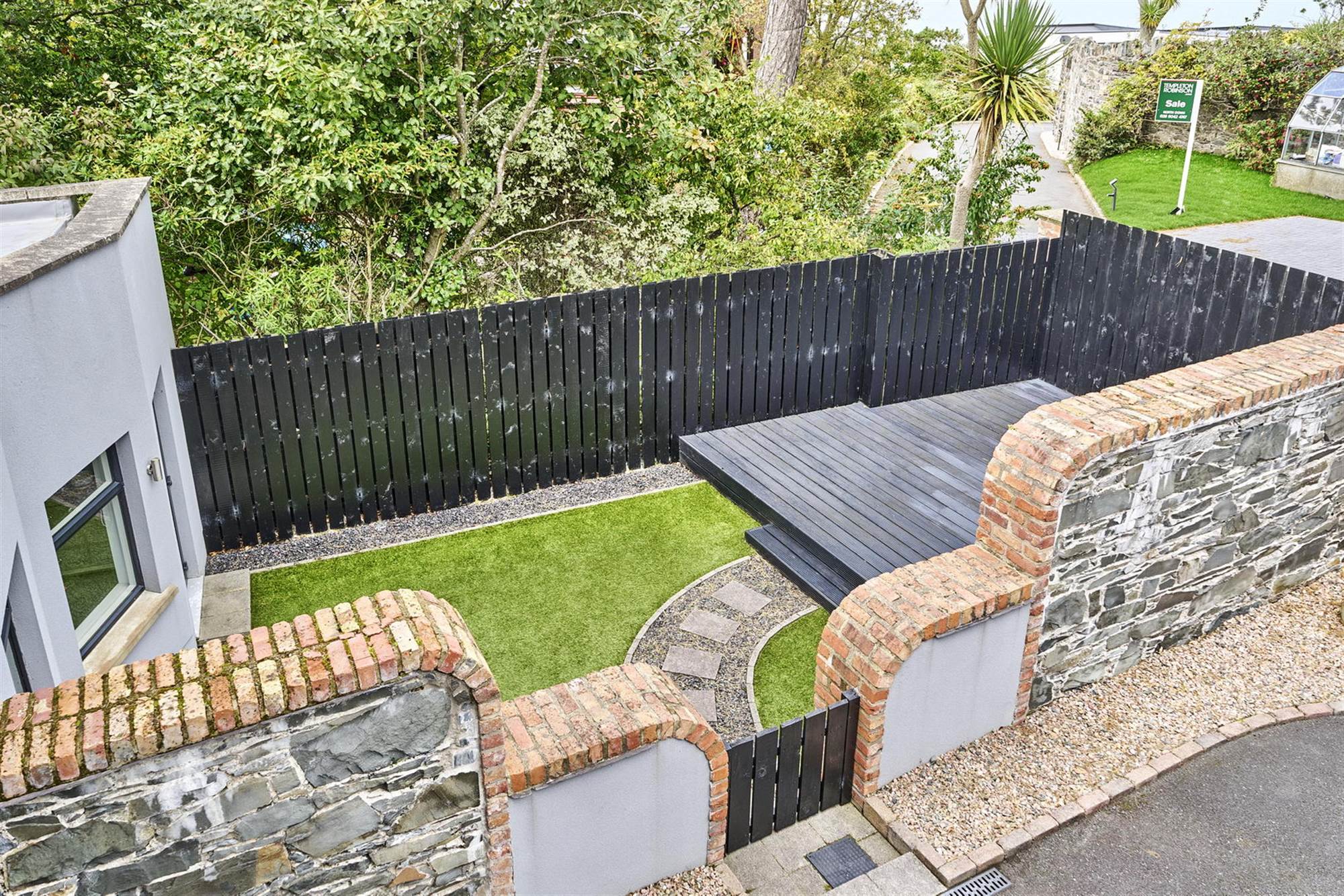 Enclosed entertaining area with artificial lawn and composite decking area, stoned beds, feature stone wall and boundary fence. Outside lighting, outside water supply and power supply, plumbed for a jacuzzi/hot tub, gate to tarmac front driveway with ample parking and turning space. Security light.