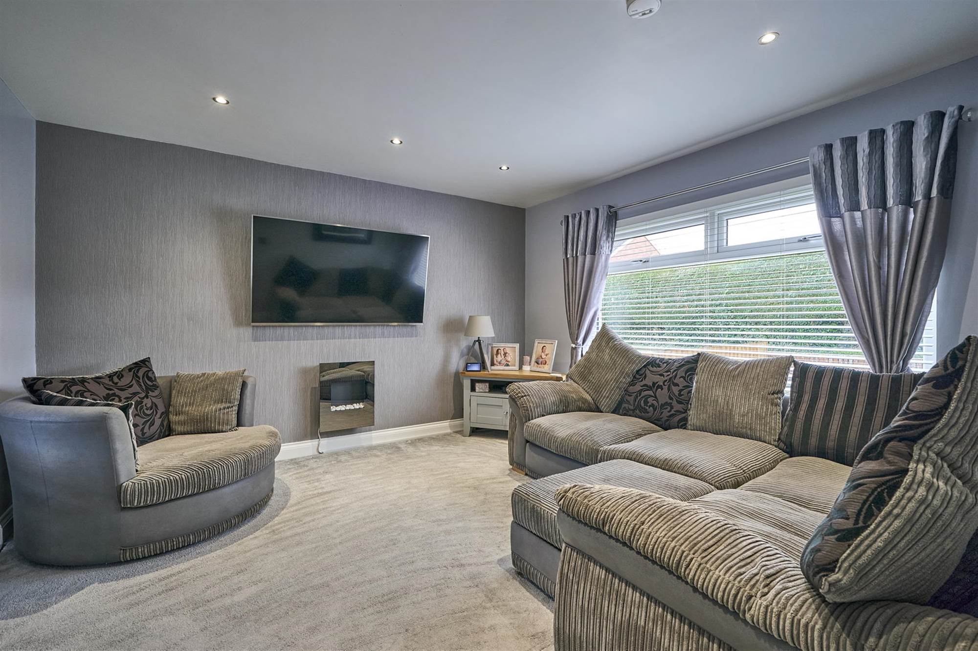 Bright, Spacious Living Room with a Feature Wall Mounted Electric Fire