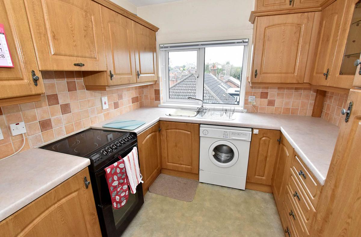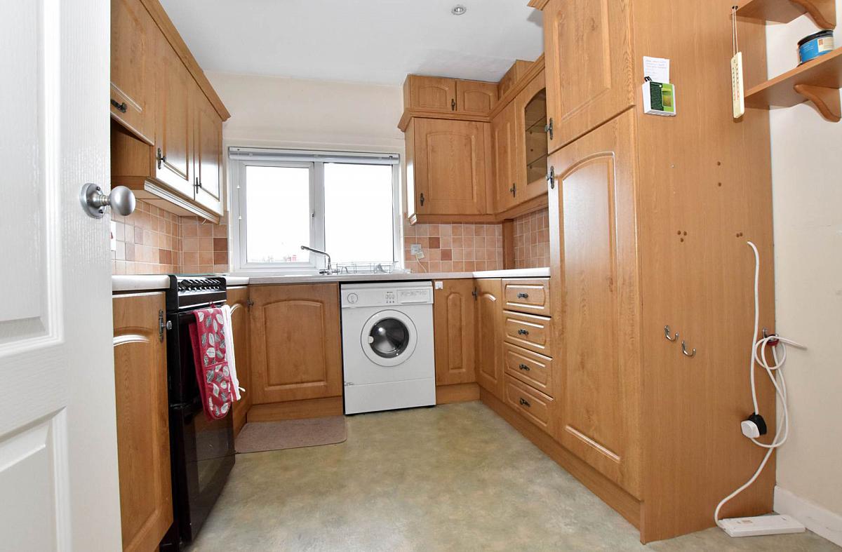 Single drainer stainless steel sink unit. Good range of fitted high and low level kitchen units with roll edged work tops. Part wall tiling. Plumbed for washing machine,