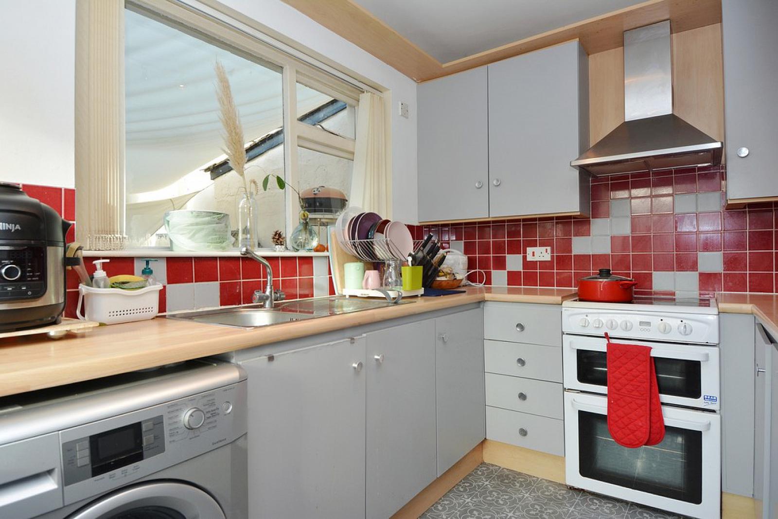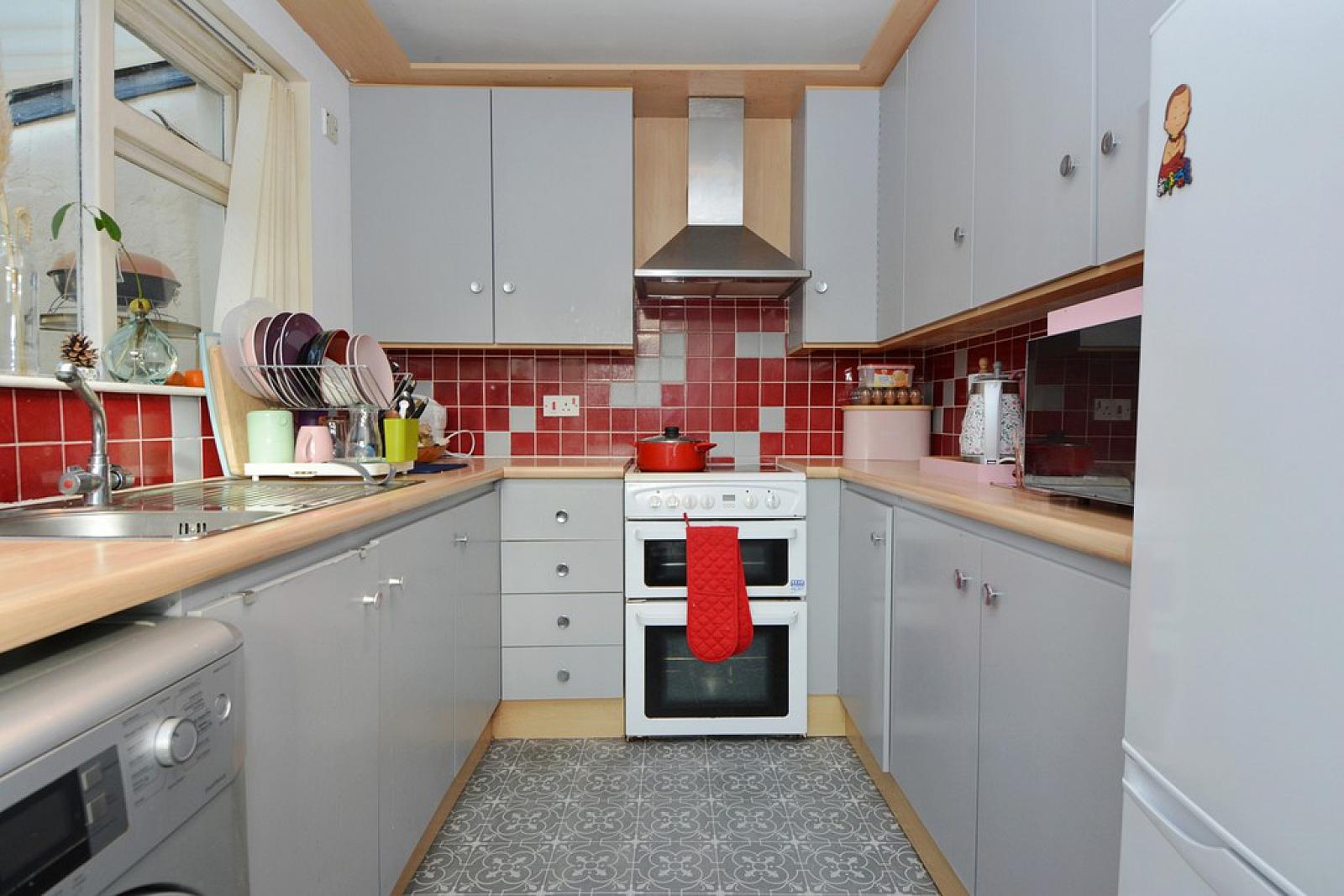 KITCHEN / DINING 15' 2" max x 11' 6" max (4.62m x 3.51m) L-Shaped Range of high and low level units with drawers and complementary work surfaces; recess for cooker; recess for fridge / freezer; plumbed for washing machine; stainless steel sink unit; double panel radiator; under stairs storage area; access to rear garden.