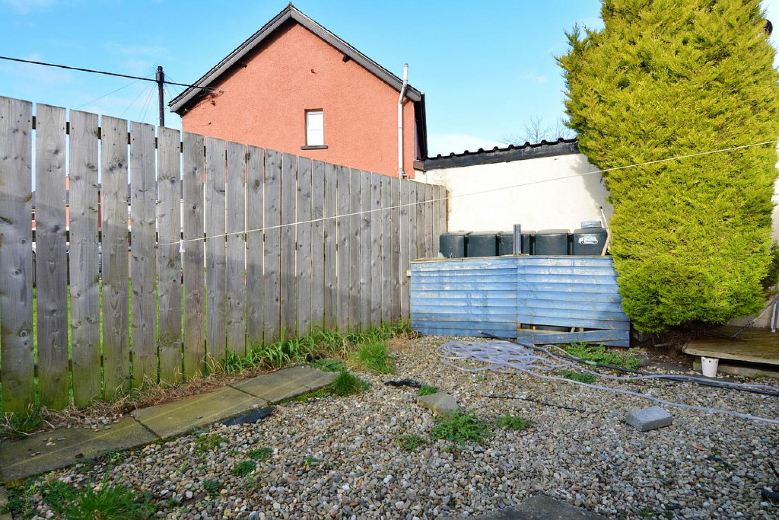 OUTSIDE Garden laid in lawn; outside boiler house; driveway to rear.