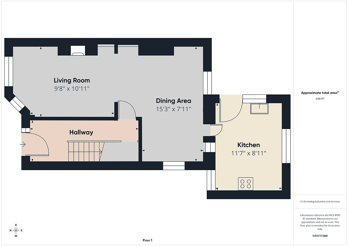 ENTRANCE HALL Under stairs storage; single panel radiator; tile floor.