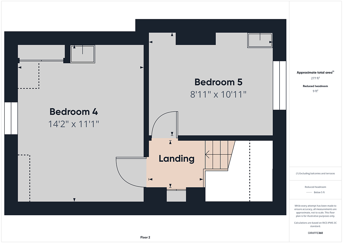 The first floor comprises three bedrooms, a bathroom and a separate WC. The second floor provides two additional bedrooms, ideal for larger families or those needing extra space for a home office or guest accommodation.