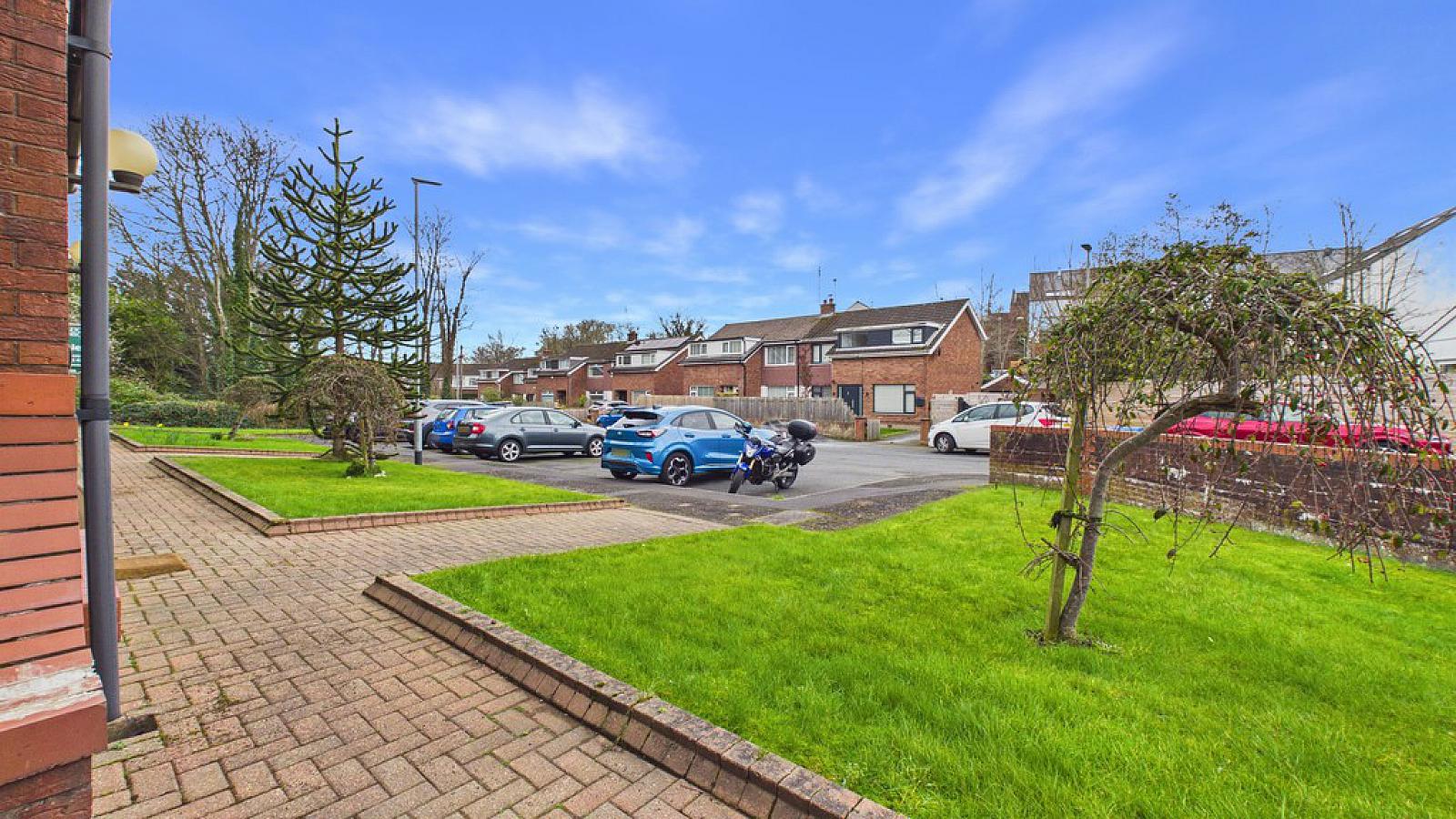 OUTSIDE Off-street parking area with communal gardens to the rear.