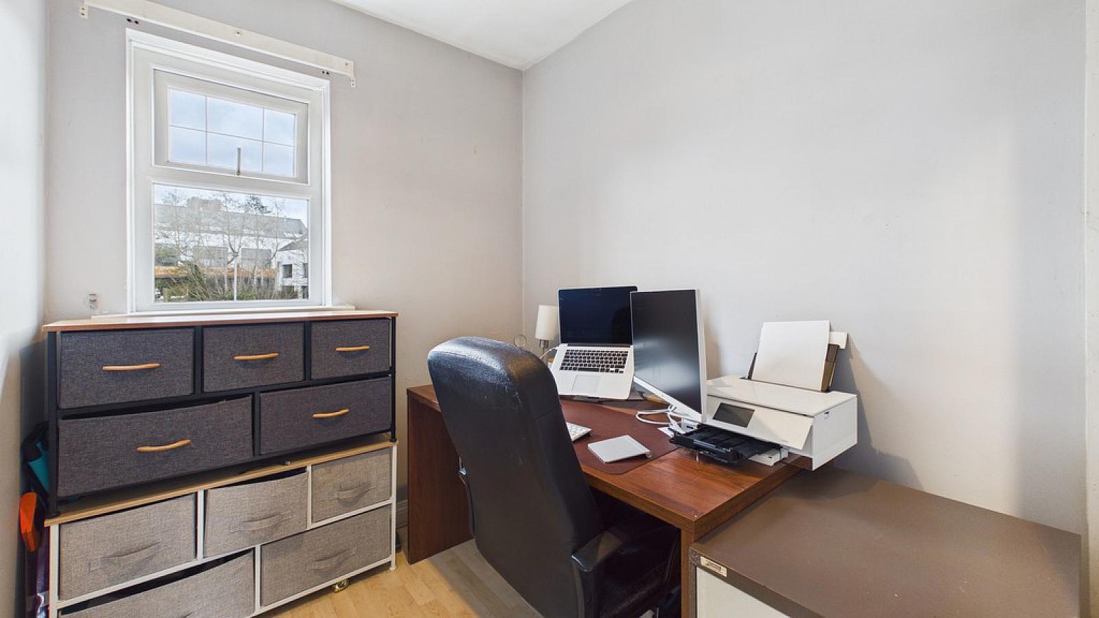 BEDROOM 3 / HOME OFFICE 7' 5" x 6' 4" (2.26m x 1.93m) Wood laminate floor; single panel radiator.