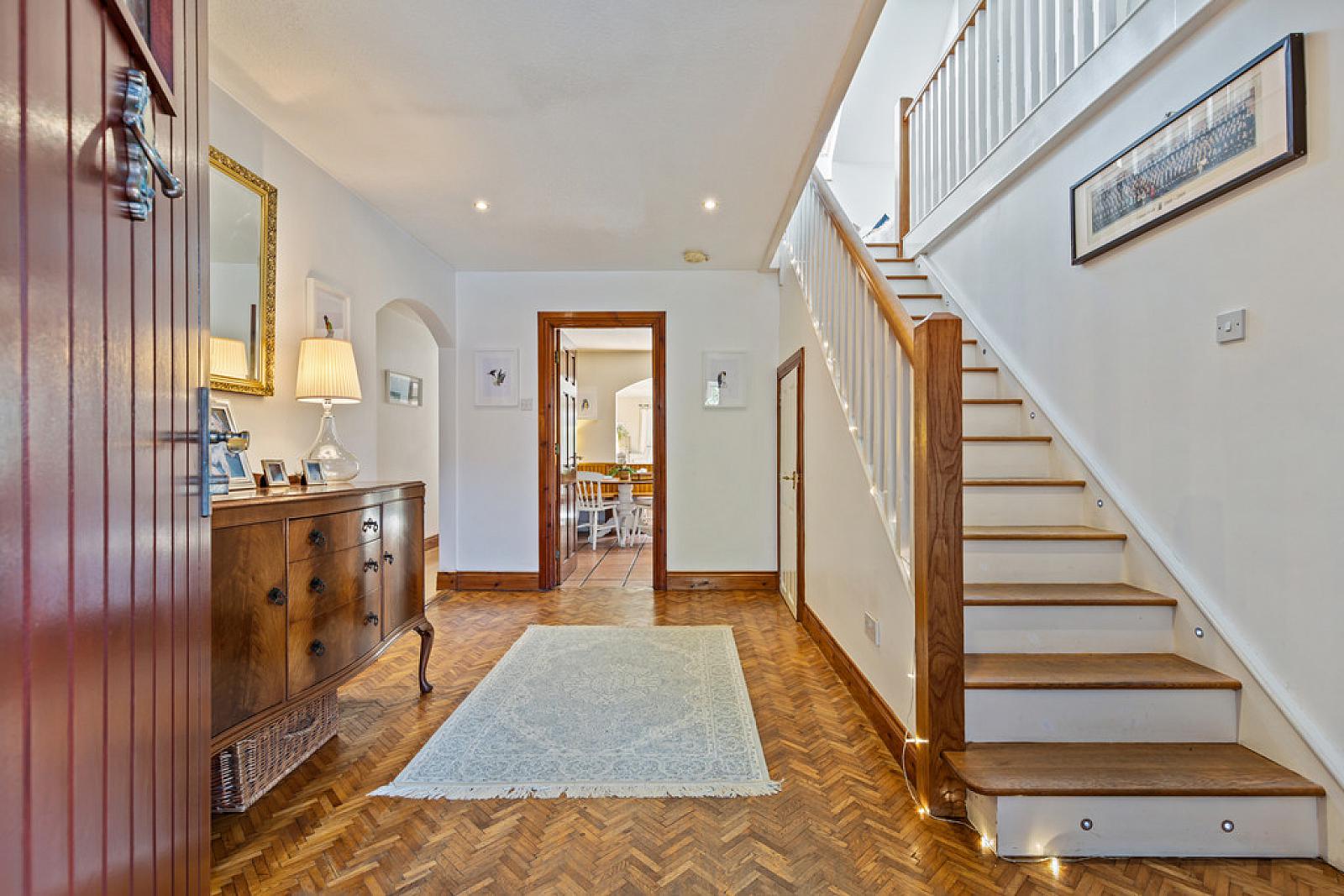 RECEPTION HALL Parquet flooring; under stairs storage.