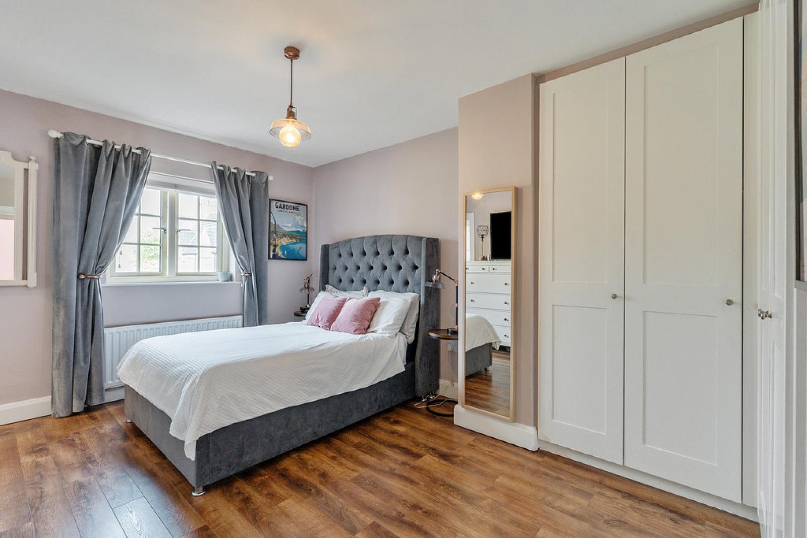 BEDROOM 1 13' 8" x 11' 5" (4.17m x 3.48m) Built-in wardrobes; wood floor; single panel radiator.