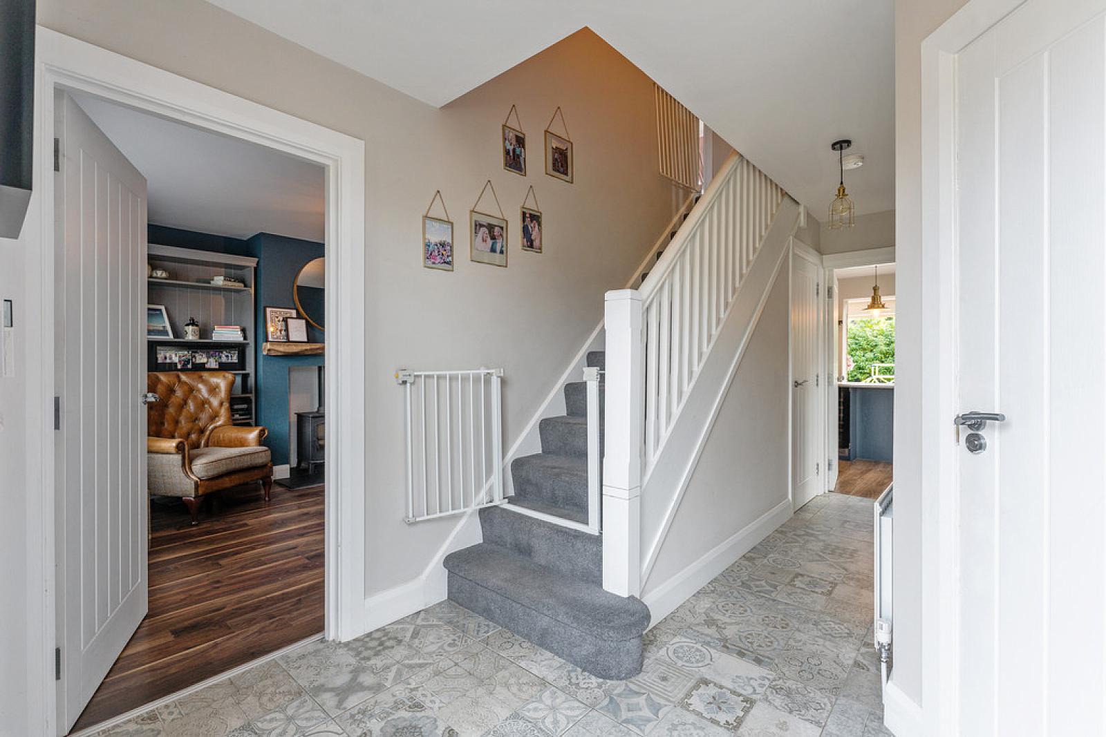 ENTRANCE HALL Tile floor; cloaks cupboard; under stairs storage; single panel radiator.