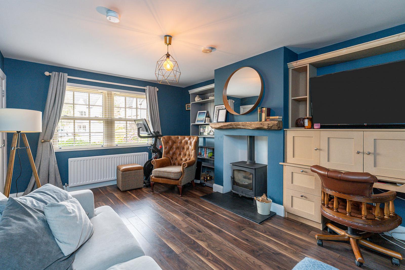 LIVING ROOM 15' 9" x 11' 6" (4.8m x 3.51m) Feature cast iron stove; wood floor; double panel radiator; built-in writing desk.