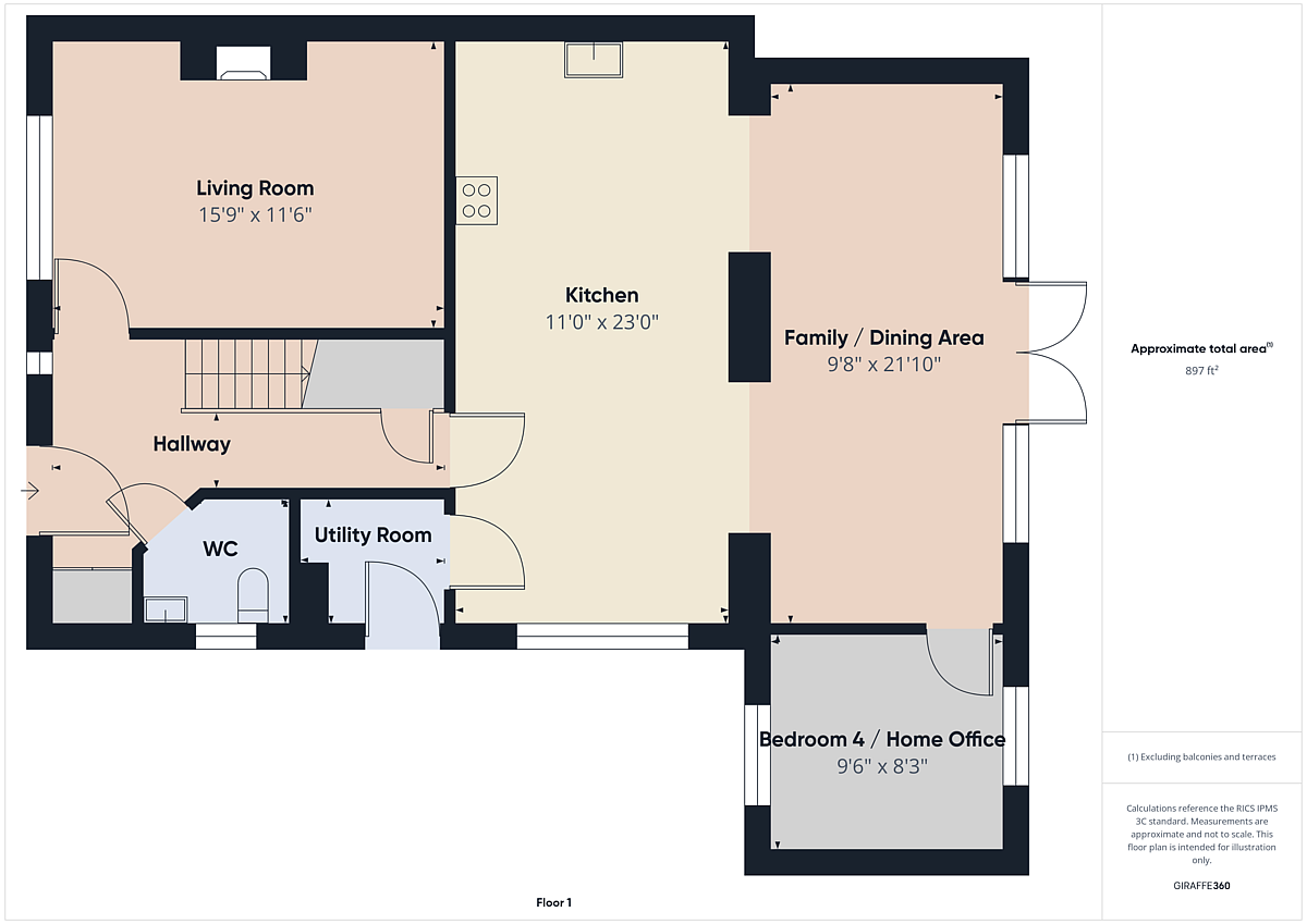 FAMILY / DINING AREA 21' 10" x 9' 8" (6.65m x 2.95m) French Doors to rear garden; wood effect tile floor; two vertical radiators.