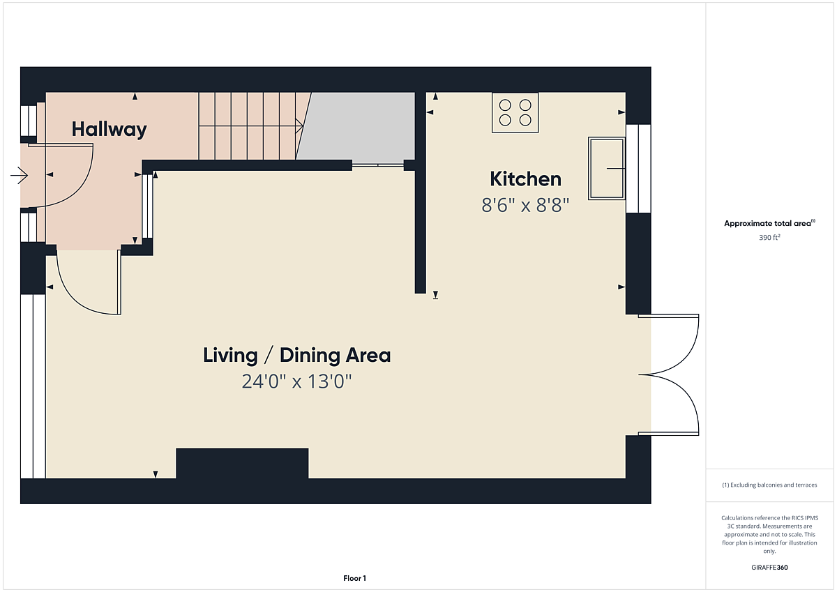 LIVING / DINING AREA 24' 0" x 13' 0" (7.32m x 3.96m) Under stairs storage; double panel radiator; single panel radiator. French Doors to rear garden.