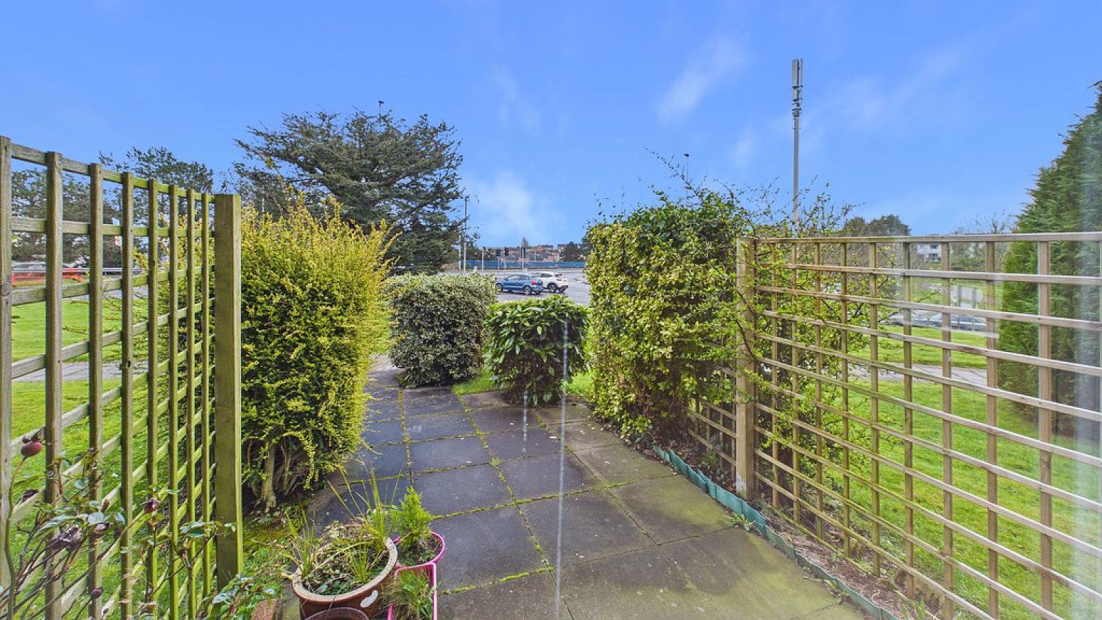 OUTSIDE Residents parking area; communal gardens.
