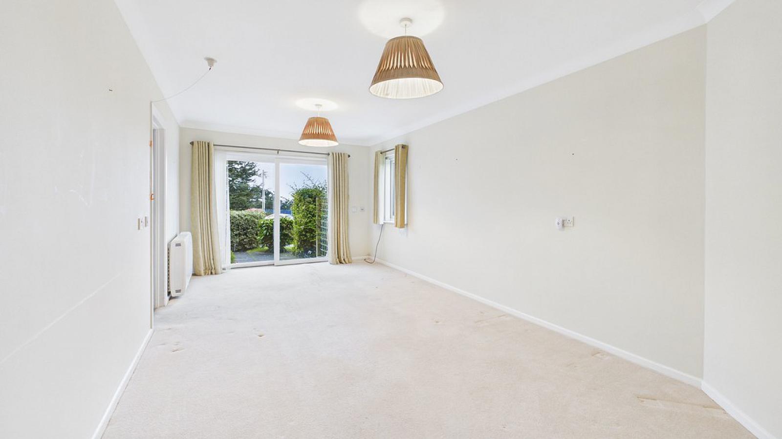 LIVING ROOM 19' 10" x 10' 8" (6.05m x 3.25m) Two wall-mounted electric heaters; sliding door to patio area.